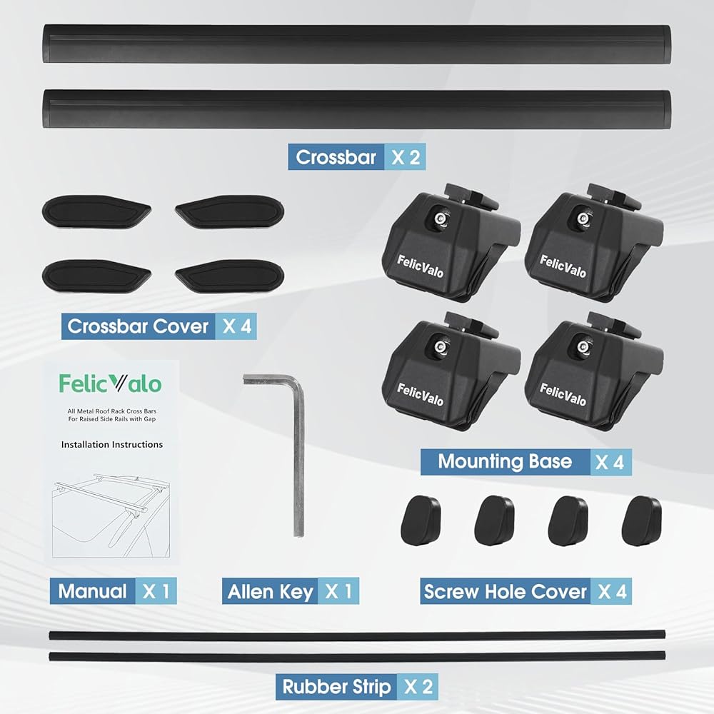 ✔ 【مركبة متوافقة】: قضبان رف سقف فيليكفالو عالمية ، متوافقة مع القضبان الجانبية المرتفعة مع الفجوة. قياس أطول مسافة بين قضبان سقف سيارتك 2. إذا كانت المسافة أقل من 53 بوصة ، فهي مناسبة لسيارتك. إذا كنت غير متأكد من التوافق ، فالرجاء عدم التردد في الاتصال بنا للحصول على المساعدة.