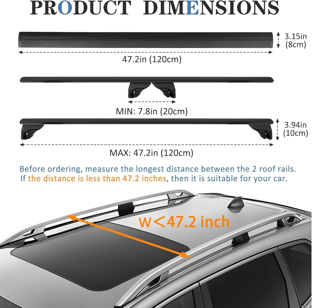 ✔ 【خلوص مرتفع】: ارتفاع قضبان سقف السيارة + 3.94 "ارتفاع العارضة ، السماح بخلوص وافٍ لفتح فتحات السقف والإغلاق دون إعاقة.