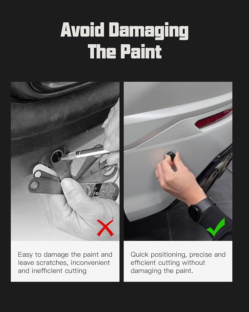 This parking sensor cutting template kit is engineered for professional vinyl wrap installation. Featuring 10 precision hole sizes (16–25mm), it allows accurate cutting for most car sensor diameters. The knife-shaped design ensures stable positioning while the high-strength plastic prevents paint and seal damage. Compatible with TPU, carbon fiber, and vinyl wraps. Reusable and packed in a convenient transparent storage box for field or shop use