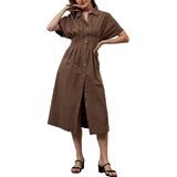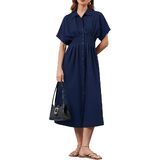 المواد: فستان القميص المسبق للزر مصنوع من نسيج بوليستر مطبوع. التآكل المريح والخفيف الوزن والراحة طوال اليوم في فصل الربيع والصيف الحار والخريف أوائل