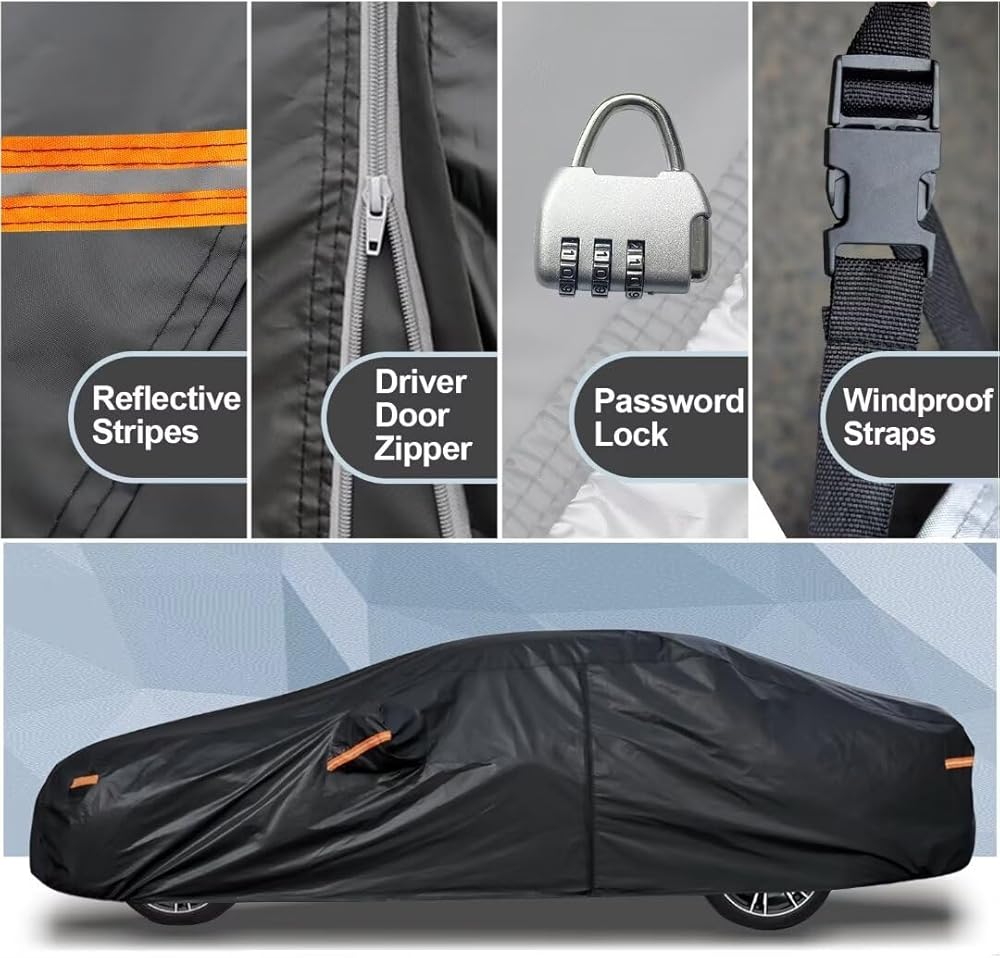 【غطاء سيارة تم ترقيته】- غطاء سيارة Kayme مصنوع من بوليستر عالي الكثافة وطبقة أحادية 210 طن. وهو أفضل من 190T لمقاومة البلى المقاومة للماء ومقاومة للدموع. متينة من الغطاء الأكثر تشابها. وزن خفيف ، من السهل وضعه والإقلاع.