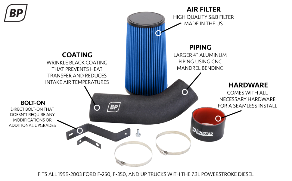 مكاسب الطاقة: أضف ما يصل إلى 15 WHP و 25 WTQ إلى 7.3 POWERSTROKE مع كمية الهواء البارد الأكبر بحجم 4 بوصات
