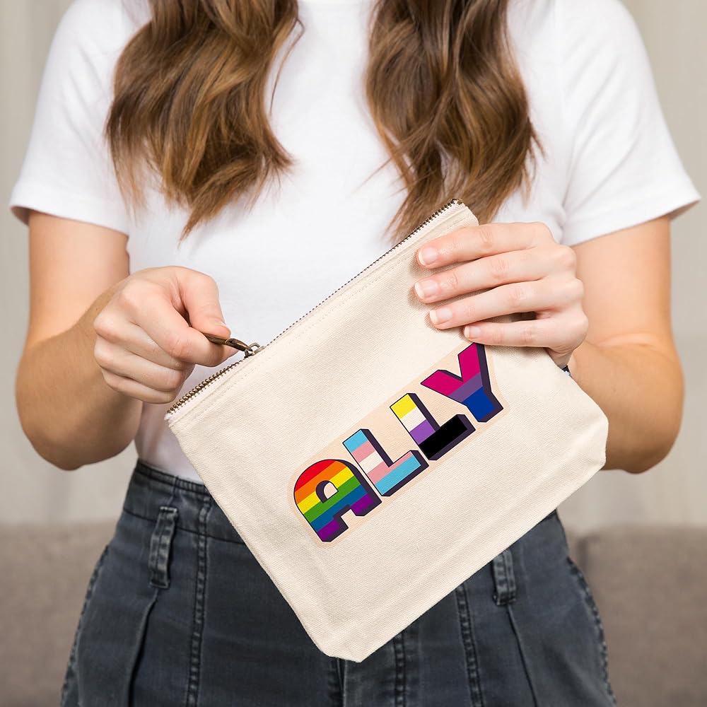 This original, high-quality cotton Zipper Pouch from Lantern Press boasts sharp detail and vivid imagery of Ally, Pride, , 100% Cotton Zipper Pouch, Travel Accessory, Go Bag.