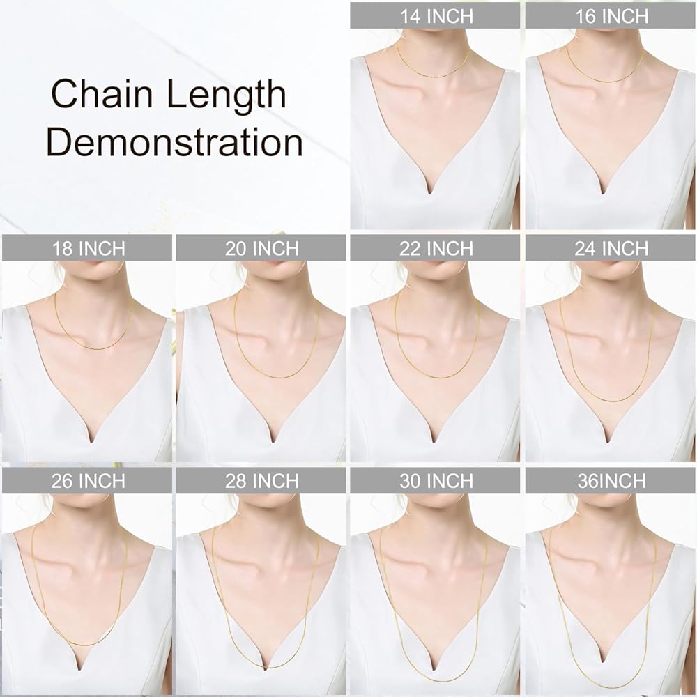 Measurement: Chain Lengths: 14inch-36inch. Widths: 0.8mm, 1mm with Lobster Clasp. Manual measuring permissible error. Each chain comes with a durable Lobster Clasp, which can clasp the ends of your necklace closely and firmly, easy to put on and take off.