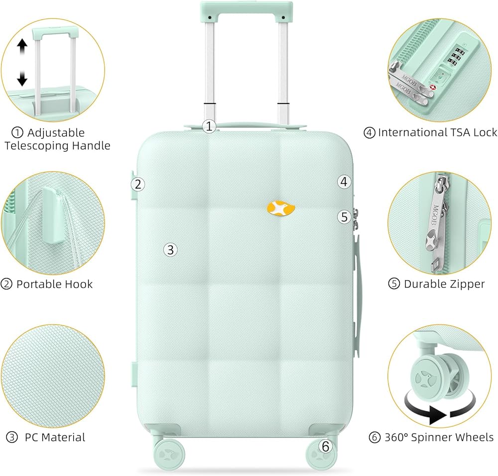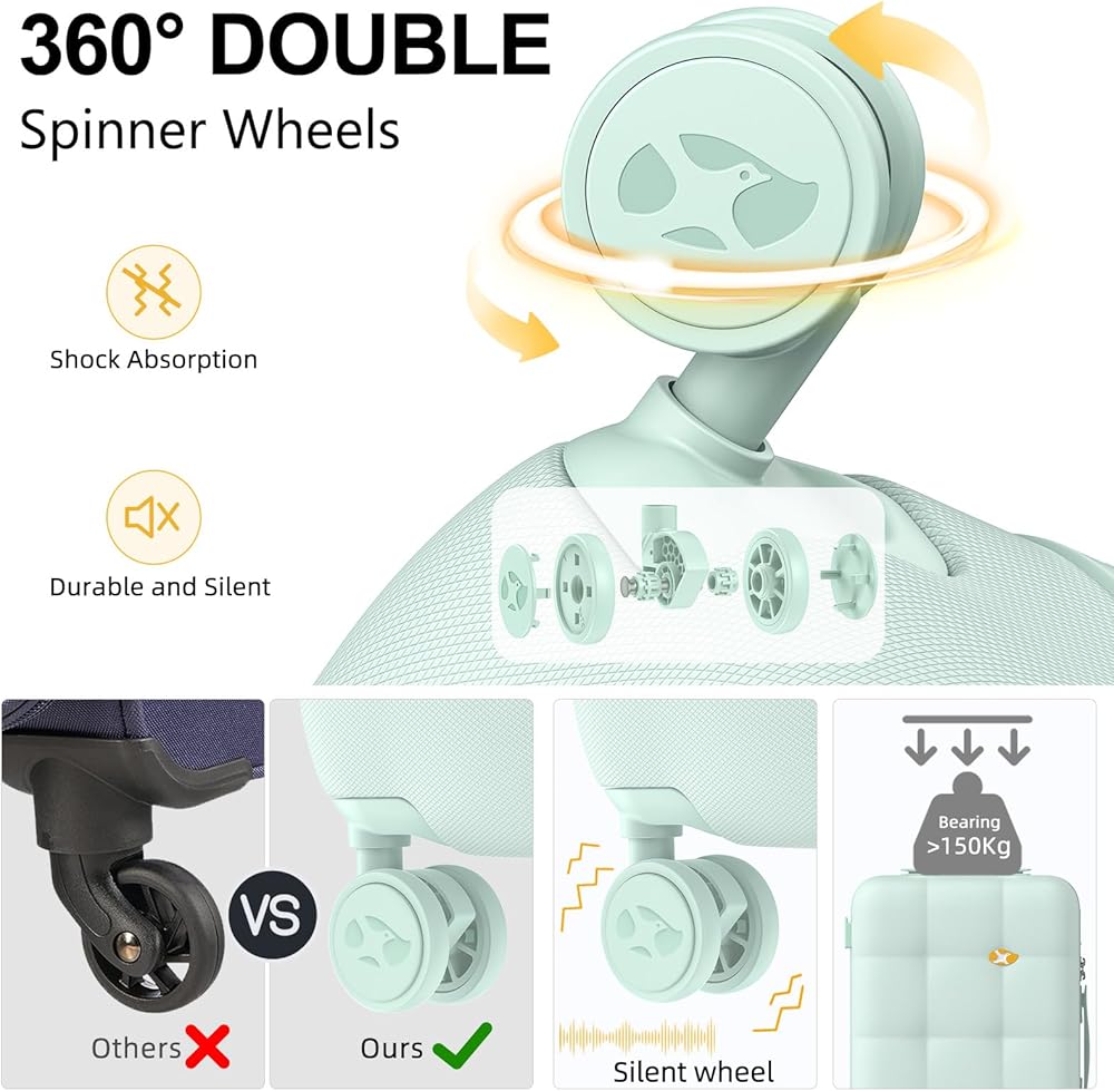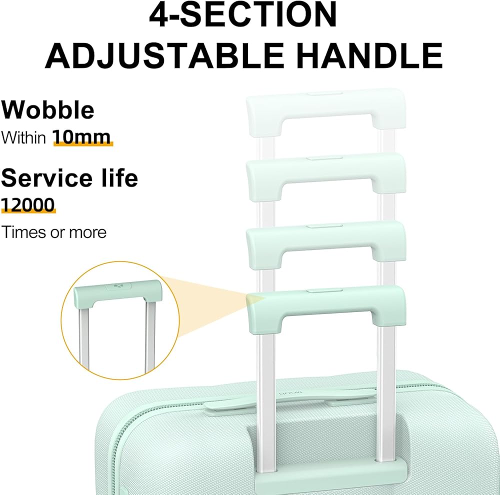 【ناعم 360 درجة التنقل】 8 عجلات سبينر صامتة تنزلق دون عناء في أي اتجاه ، مقترنة بمقبض من الألمنيوم 4 مستويات للتحكم بيد واحدة على أرضيات المطار المزدحمة.