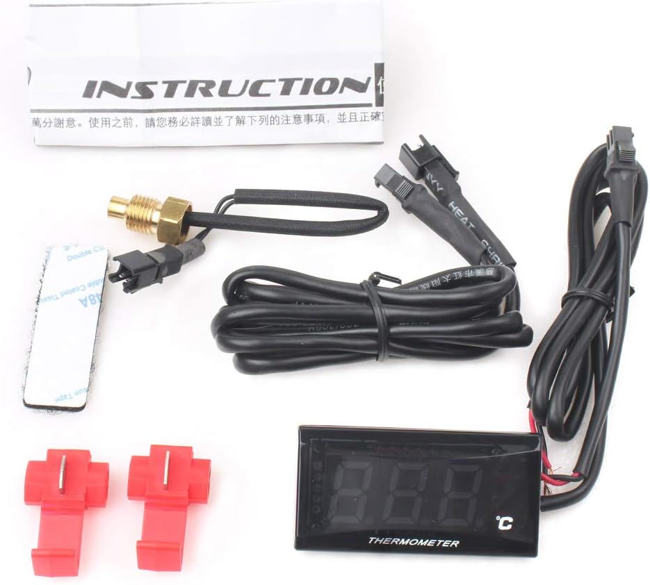Motorcycle Digital Water Temperature Gauge Meter Thermometer Hygrometer Humidity Temperature Meter for Most 12V Motorcycles Racing Scooter, Blue