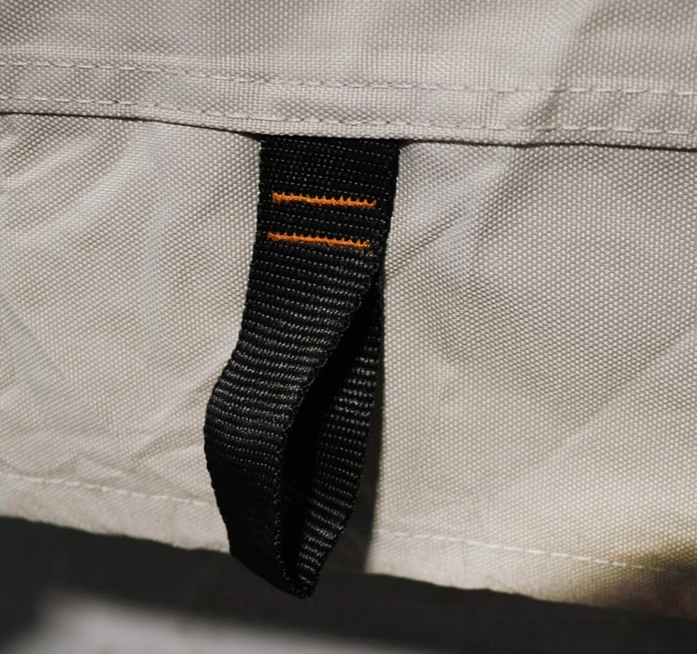• Quick and secure fit cover: Adjustable elastic cord around the bottom hem provides a fast and snug fit; Built-in strap loops work seamlessly with tight down straps and buckles to secure the cover on the trailer when traveling