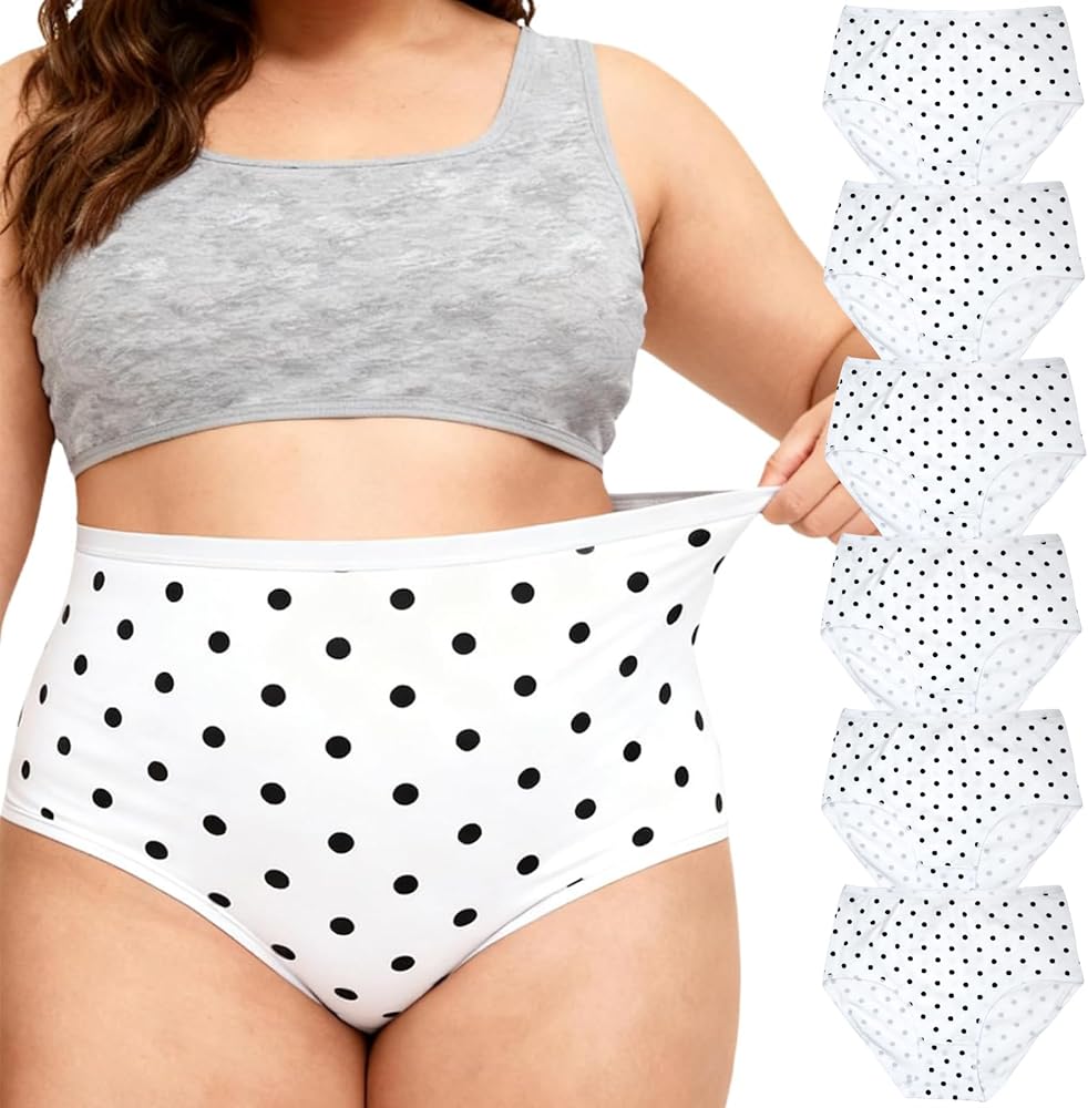 القيمة المتعددة: مجموعة من 6 XL و 2XL و 3XL و 4XL و 5XL سراويل داخلية مريحة للمرأة الداخلية بألوان مختلفة بما في ذلك أنماط Polka DOT والباستيل الصلبة والظلال المحايدة