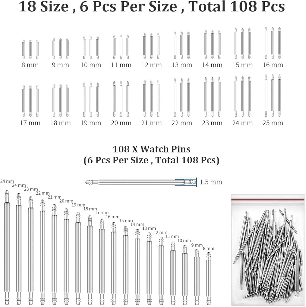 - دبابيس ساعة (18 مقاسًا مختلفًا من 8 ملم إلى 25 ملم)
