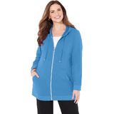 Our long, lean French Terry hoodie is made for cozy layering. Designed with a lightweight softness for seasonless wear and a touch of stretch for made-to-move comfort. Layer with any of our soft knit tees and pair with leggings. FABRIC: Super-soft and comfortable French Terry knit with all the stretch and ease you need for comfort on-the-go. FIT: Relaxed and easy with added length for comfort and coverage. Long sleeves. Drawstring hood. Zip front. Angled zip pockets. 58% Cotton, 37% Polyester, 5% SpandexMachine WashImported Plus Size TopFront Length (On Body): Regular 35”, Petite 33”Plus Sizes 0X–6X, Petite Plus Sizes 0XWP–3XWPCatherines
