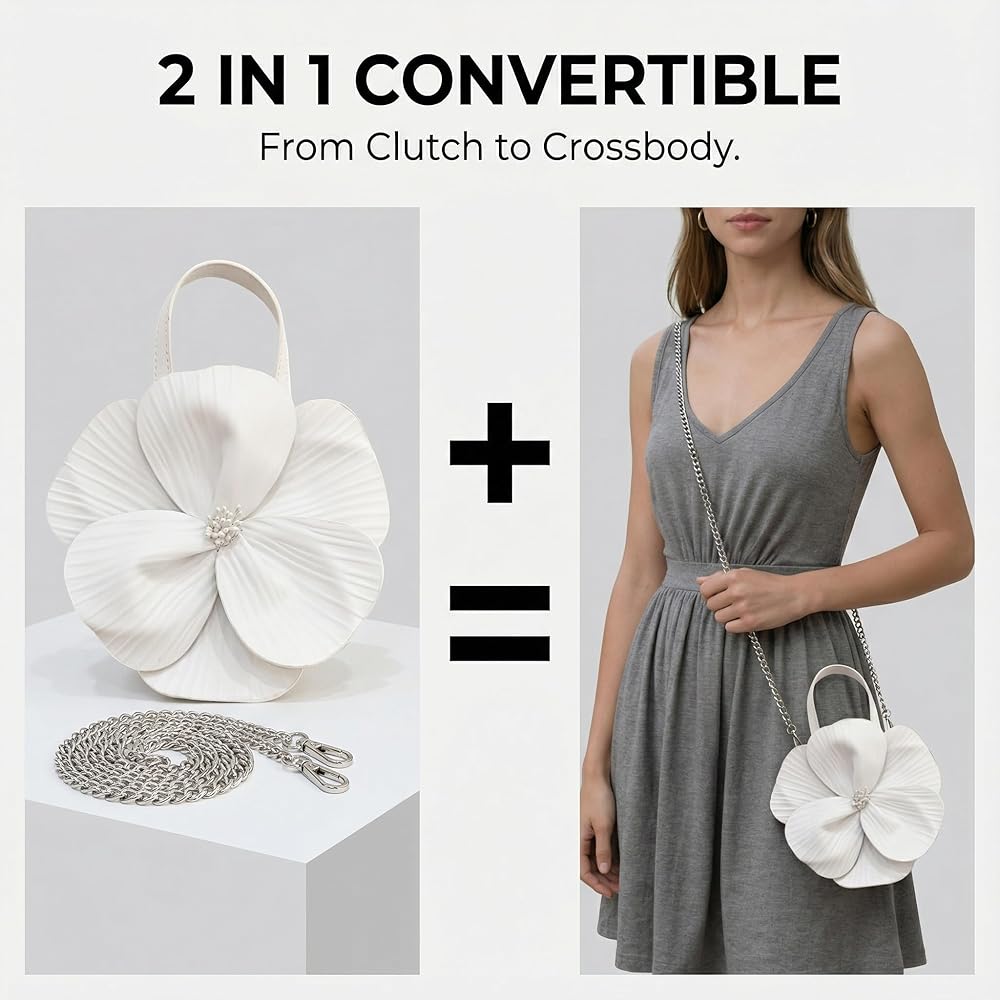 Versatile 3-in-1 Design: Detachable metal chain strap converts from elegant clutch to shoulder bag or crossbody, perfect for weddings, galas, and date nights.