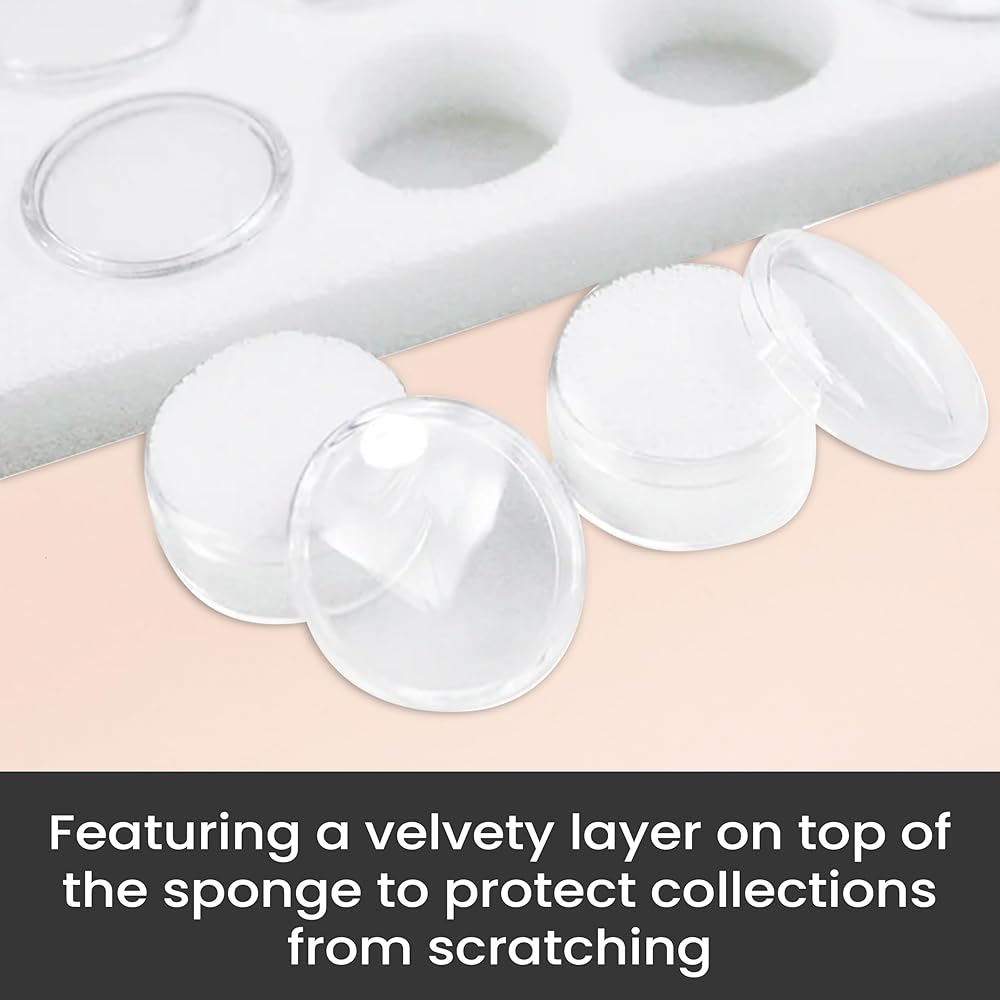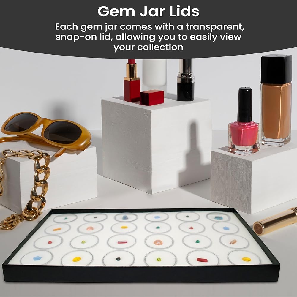 أغطية جرة الأحجار الكريمة: تأتي كل جرة جوهرة مع غطاء شفاف ومفصل ، مما يتيح لك مشاهدة مجموعتك بسهولة مع حماية المجوهرات أو الأحجار الكريمة من الغبار والرطوبة والخدوش أثناء التخزين أو النقل.
