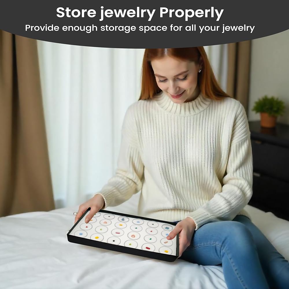 تفاصيل الحجم: يبلغ طول الدرج 8.25 "× 14.75" × 1 "، في حين أن كل جرة جوهرة لديها قطر 1.1" ، مما يوفر مساحة كافية لعقد القطع الفردية. يضمن التصميم الأنيق والمضغوط وضعًا سهلاً في الأدراج أو على كونترتوب.