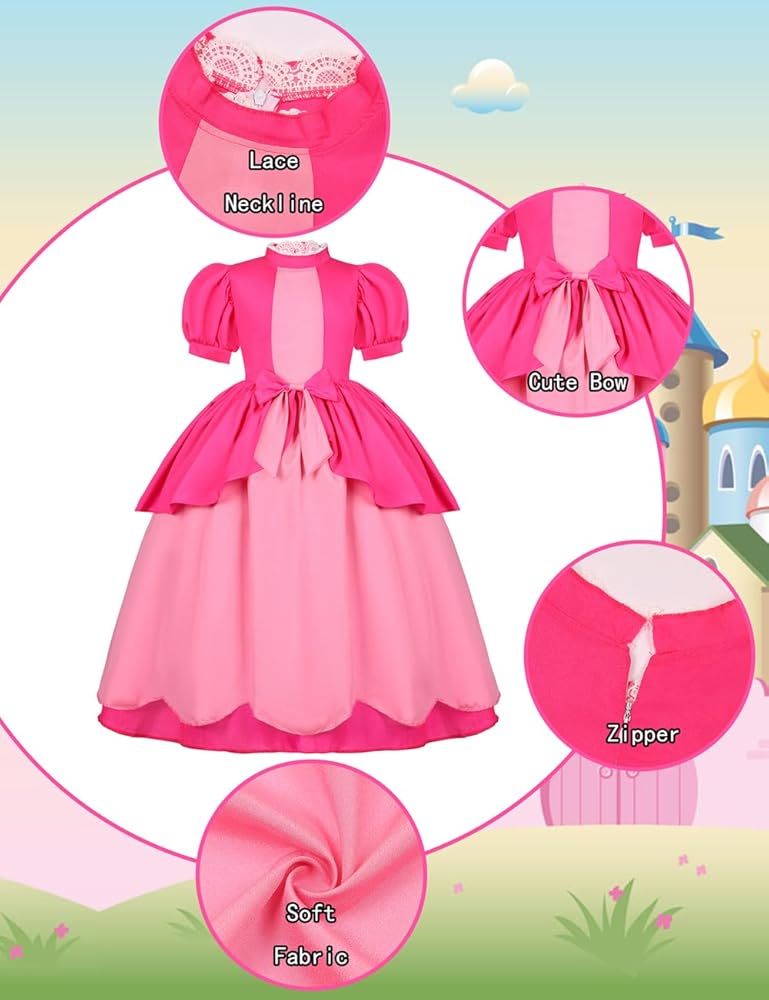 مجموعة فستان الأميرة الخوخ للأطفال هذه مثالية لحفلات الأميرة الخوخ، والهالوين، وأعياد الميلاد، والحفلات