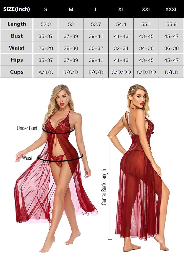 نصائح: يُغسل يدويًا بشكل منفصل. Packega : 1 × فستان لانجري نسائي طويل شفاف + 1 × سلسلة G ❤