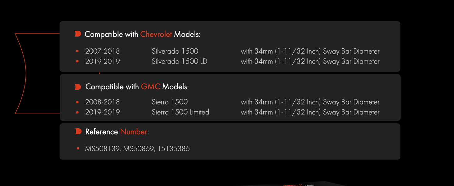 [تركيب المركبات]: متوافق مع شيفروليه سيلفرادو 1500 2007-2018 ، سيلفرادو 1500 LD 2019 ؛ متوافق مع GMC Sierra 1500 2008-2018 ، Sierra 1500 Limited 2019 --- يأتي بدون قوسين
