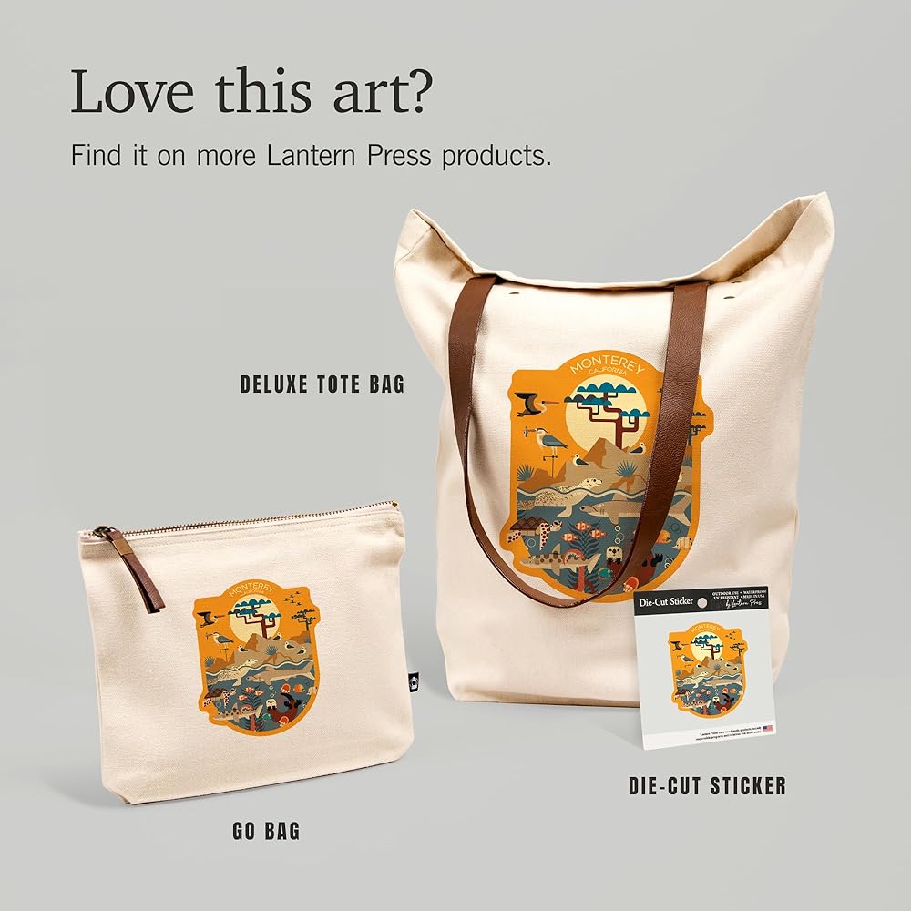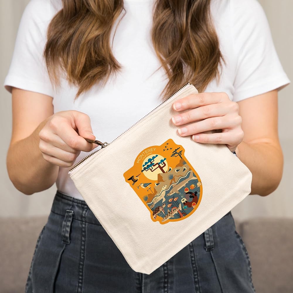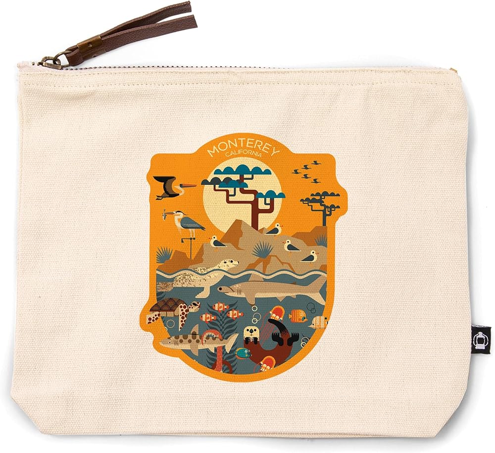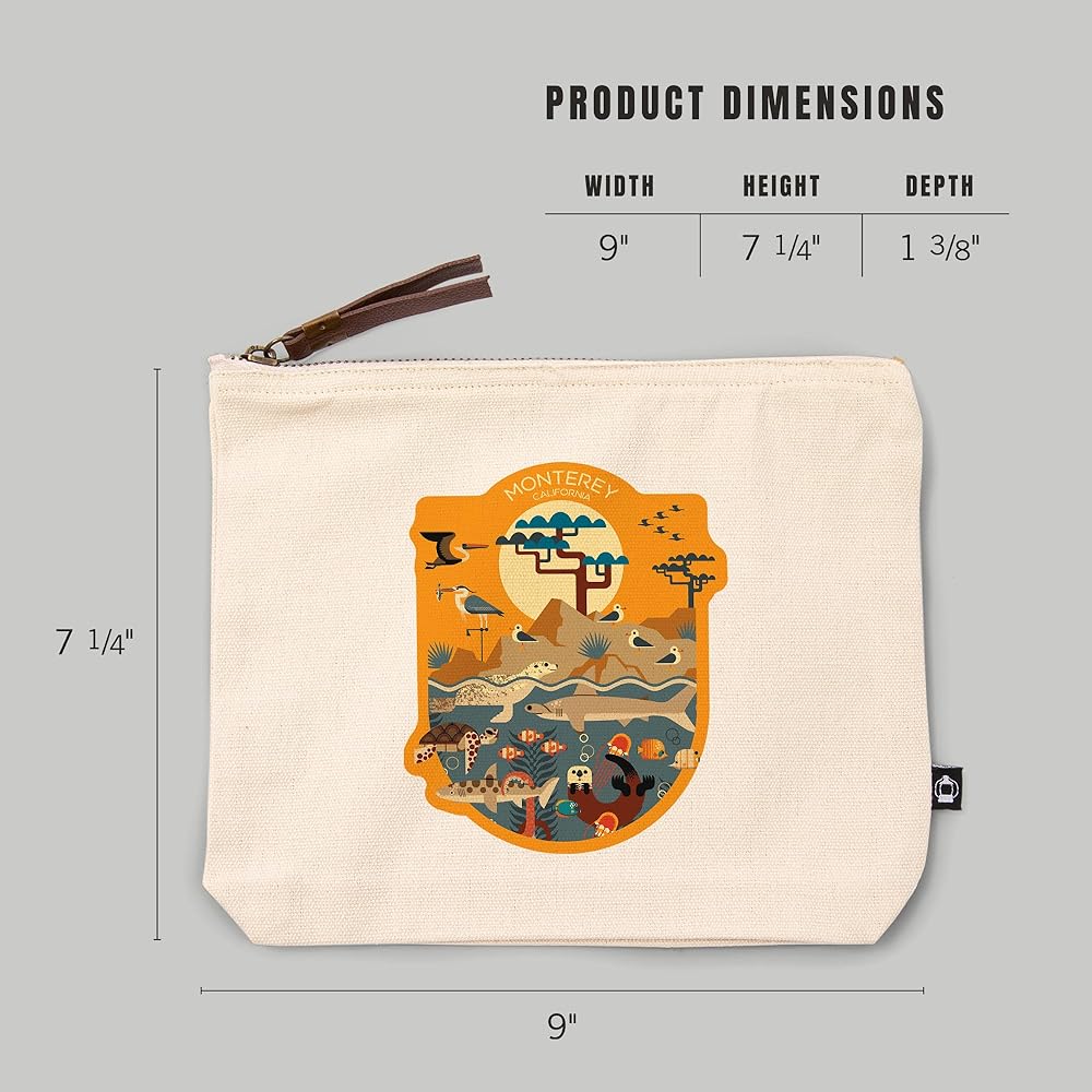 This original, high-quality cotton Zipper Pouch from Lantern Press boasts sharp detail and vivid imagery of Monterey California, Marine Animals, Geometric, , 100% Cotton Zipper Pouch, Travel Accessory, Go Bag.