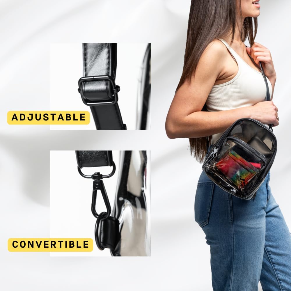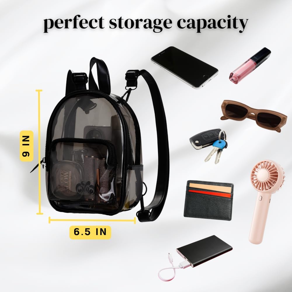 Anti-Theft Clear Mini Backpack Bag with Convertible Straps – Perfect for Stadiums, Festivals, Concerts & Sports Events Stay secure and stylish with our Anti-Theft Black Clear Transparent Mini Backpack! Designed for convenience, safety, and style, this versatile bag is the perfect accessory for a variety of events, from concerts, raves, and festivals to sports games and stadiums.