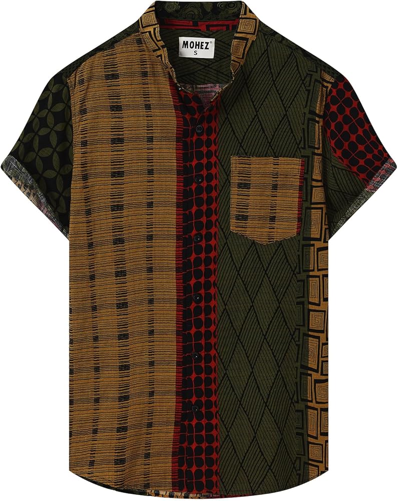 التصميم: يتميز قميص هاواي بتصميم مطبوع مبتكرًا تمامًا مع طوق وقوف ، وأزرار ، وأكمام قصيرة ، وخطوط عتيقة ، وأنماط الأزهار التي تتطابق تمامًا مع موضوع العطلات والأنشطة الخارجية.