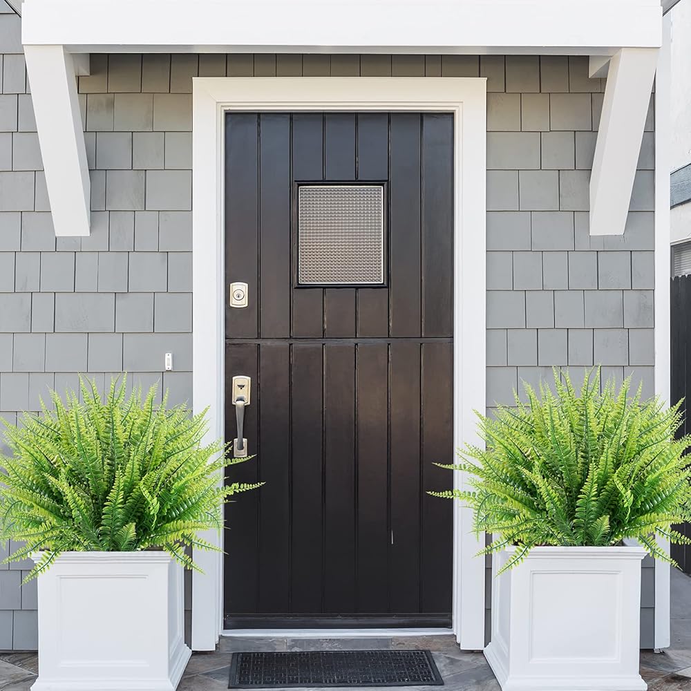 【استخدام الديكور متعدد المشهدات-مصممة للديكور في الخارج. تضيف نباتات بوسطن فيرن الاصطناعية التي تشبه الحياة سحرًا ساحرًا إلى الشرفة الأمامية والممر والحديقة والمطبخ والمكتب ونوافذ وغرفة معيشة وطاولة طعام وغرفة نوم وتراس وسياج حديقة. النباتات المزيفة مناسبة للغاية لزينة حديقة المنزل اليومية ، وأعياد الميلاد ، وعطلات ، وحفلات الزفاف ، والأماكن التذكارية ، ومشاريع DIY ، إلخ.