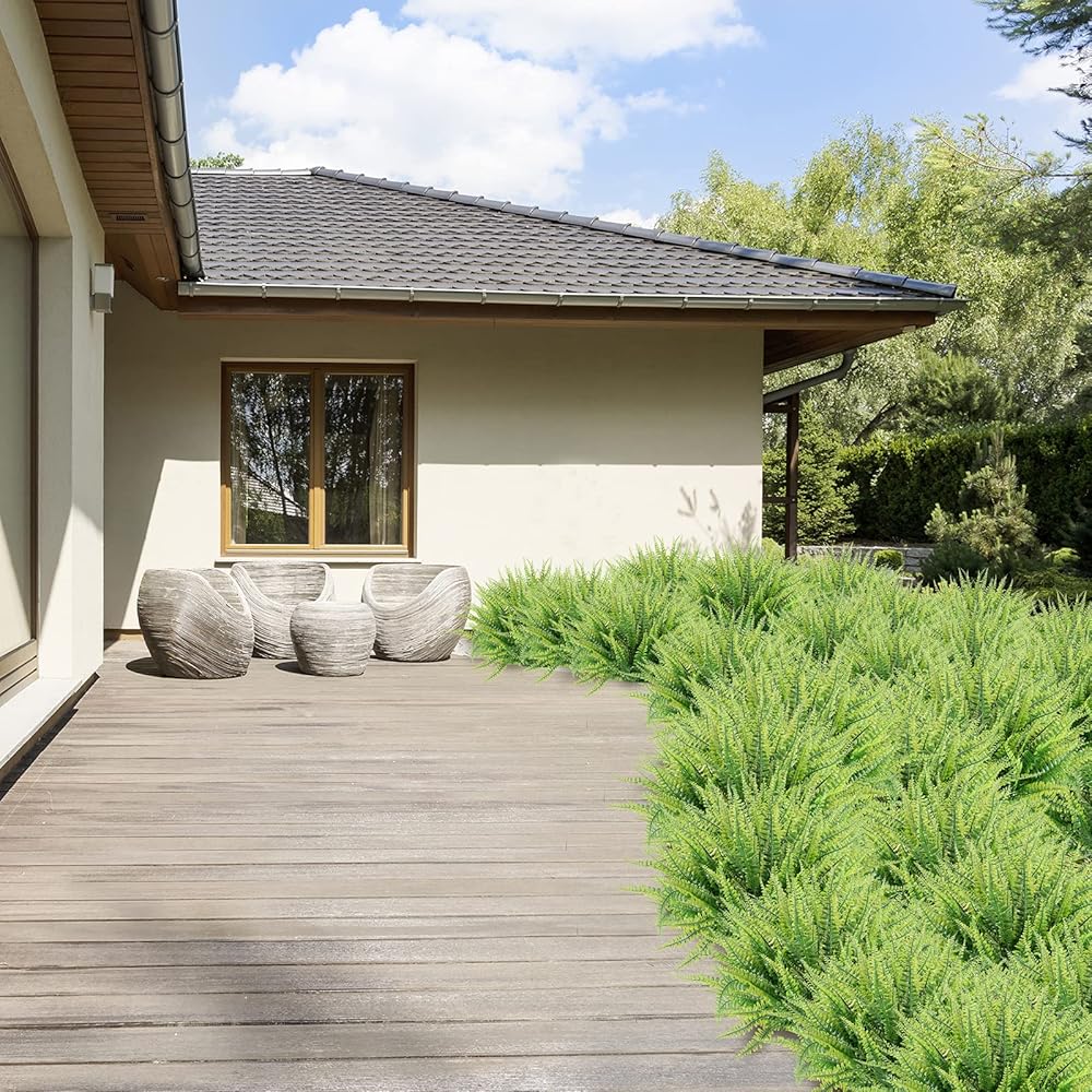 12 حزم النباتات الاصطناعية ، وهمية بوسطن سرخس الأخضر في الهواء الطلق مقاوم الأشعة فوق البنفسجية لا تتلاشى زخرفة البلاستيك النباتات حديقة الشرفة تزيين الصندوق ...