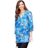 Meet your new favorite wardrobe update. This beautiful blouse is designed with slimming pintucks for gorgeous figure flattery. Lightweight and comfortable in breezy georgette fabric. Perfect with jeans or a refined pant. FABRIC: Beautifully light and breezy georgette fabric designed to float away from the body. Sleek, supple and cool to the touch. FIT: Relaxed and easy fit. 3/4 sleeves with shirring at sleeve cuffs. Bust darts for shaping. Side slits. 100% PolyesterMachine WashImported Plus Size BlouseFront Length: Regular 33", Petite 31"Plus Sizes 0X-6X, Petite Plus Sizes 0XWP- 3XWPCatherines