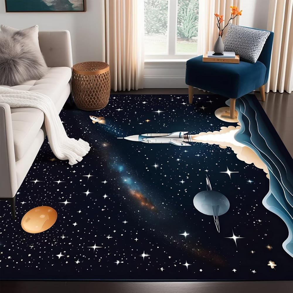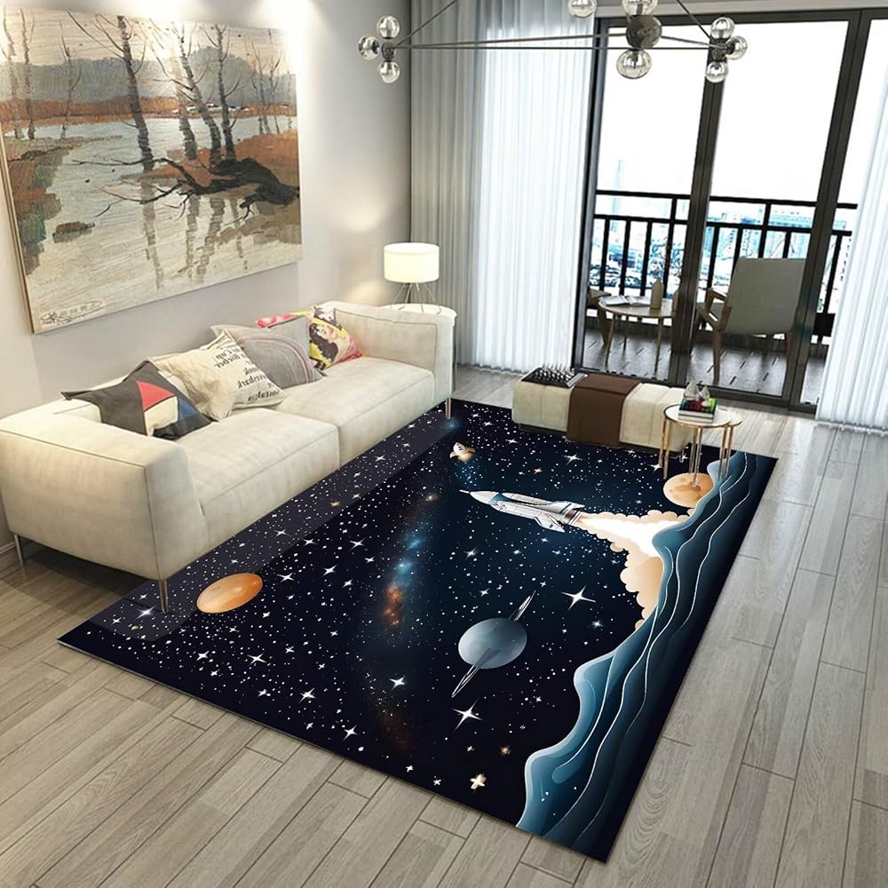 [مادة الجودة]: سجادة منطقة جالاكسي البوليستر 100 ٪. يضيف نمط بسيط من سجاد الغرفة لمسة من الجمال إلى غرفتك ، ويتطابق مع الأثاث الآخر ، ويجعل الغرف دافئة وجذابة.
