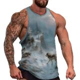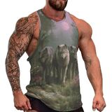 AviviRuth Men Wolf Printed Gym Workout Novelty Moon Forest Graphic Tank Tops Sleeveless Muscle Shirts Athletic Wear