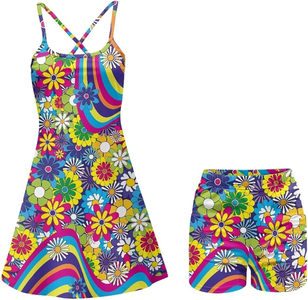 Women's Tennis Dress with Shorts and Pocket Cross Back Athletic Golf Dress Golf Outfits Workout Summer Dresses