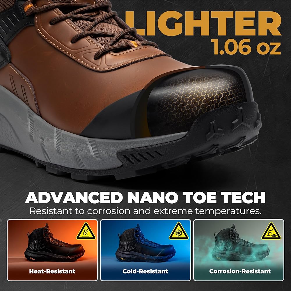 خفيفة الوزن ومريحة: أحذية عمل إصبع القدم النانوية هذه للرجال أخف بكثير من أحذية إصبع القدم الصلب ، ويزن كل صندوق فقط حوالي 22.86 أوقية (بناءً على الحجم 9). يقلل التصميم الخفيف الوزن على قدميك وساقيك ، مما يجعل هذه الأحذية مثالية لموظفي المستودعات ، والسعاة ، وأولئك الذين يحتاجون إلى الوقوف طوال اليوم.