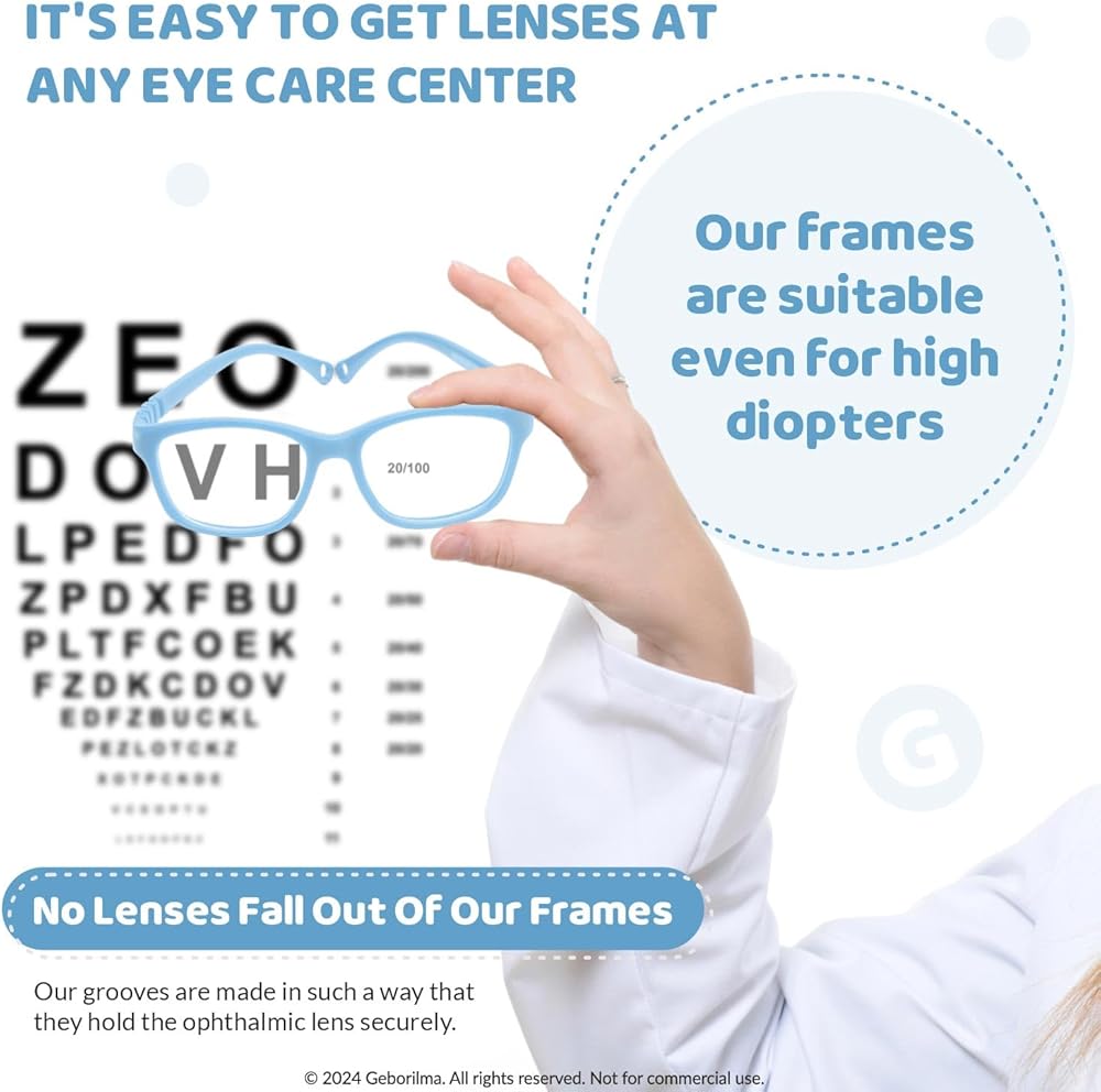 ✓ Geborilma kids prescription glasses flexible are made from TR90 material. This is a unique material with a lot of advantages