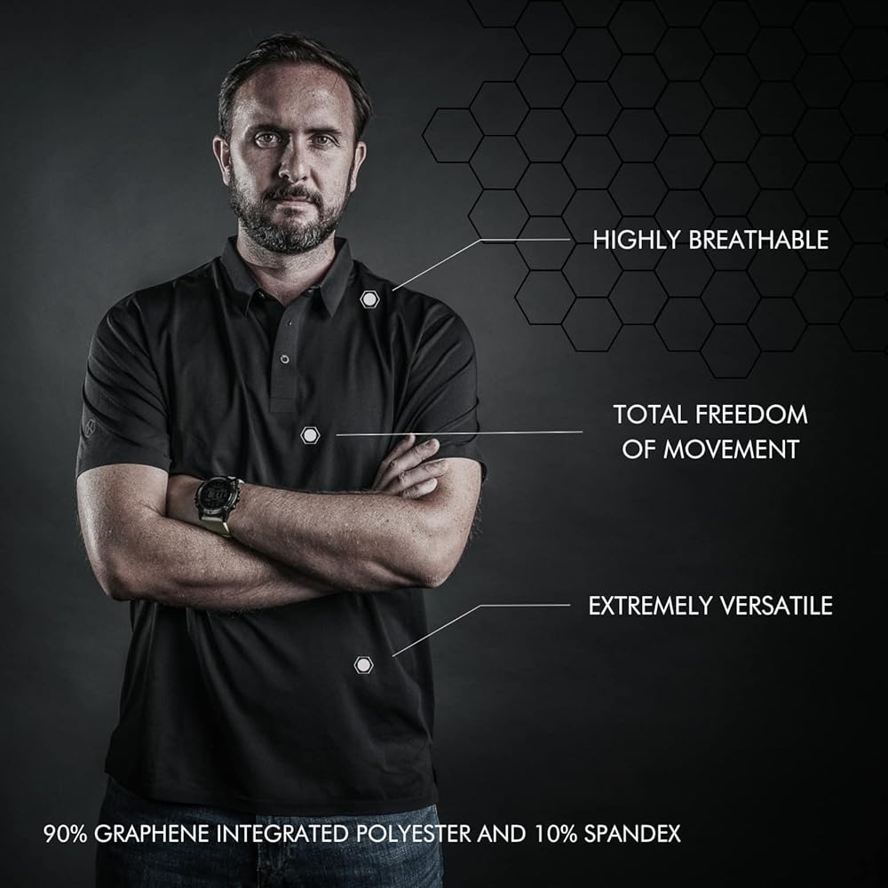 أداء فائق (ومظهر): يمكن لقميص البولو الدائري بالكامل أن يحل محل قميص التنس أو الجولف الأكثر تطورًا في السوق وفي نفس الوقت يبدو وكأنه قميص إيطالي عالي الموضة. من خلال دمج الجرافين في كل ألياف قميص بولو هذا، حققنا مستوى من الأداء والراحة يجعل صوف ميرينو وقطن سوبيما يبدو وكأنه شيء من الماضي.
