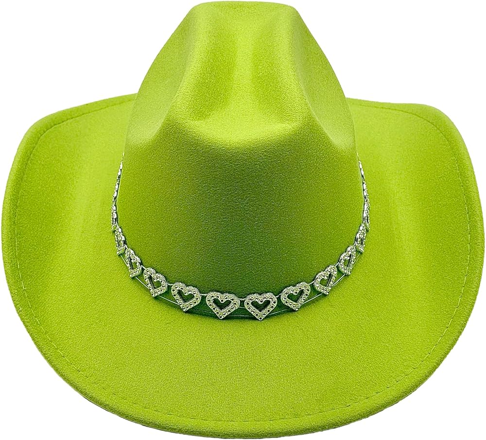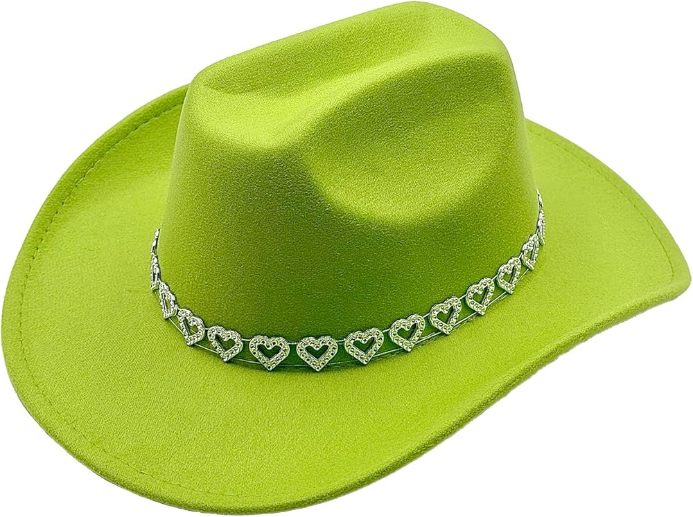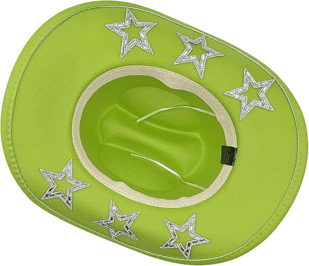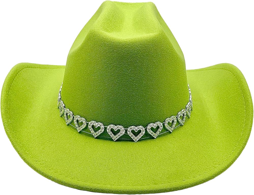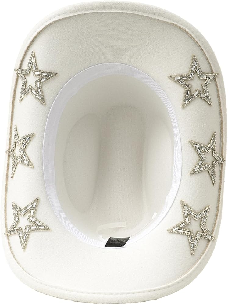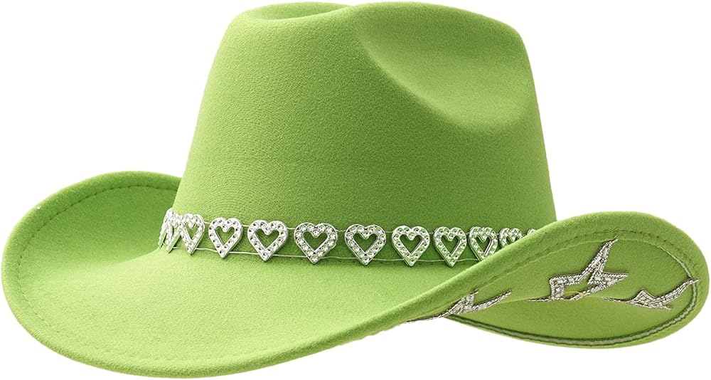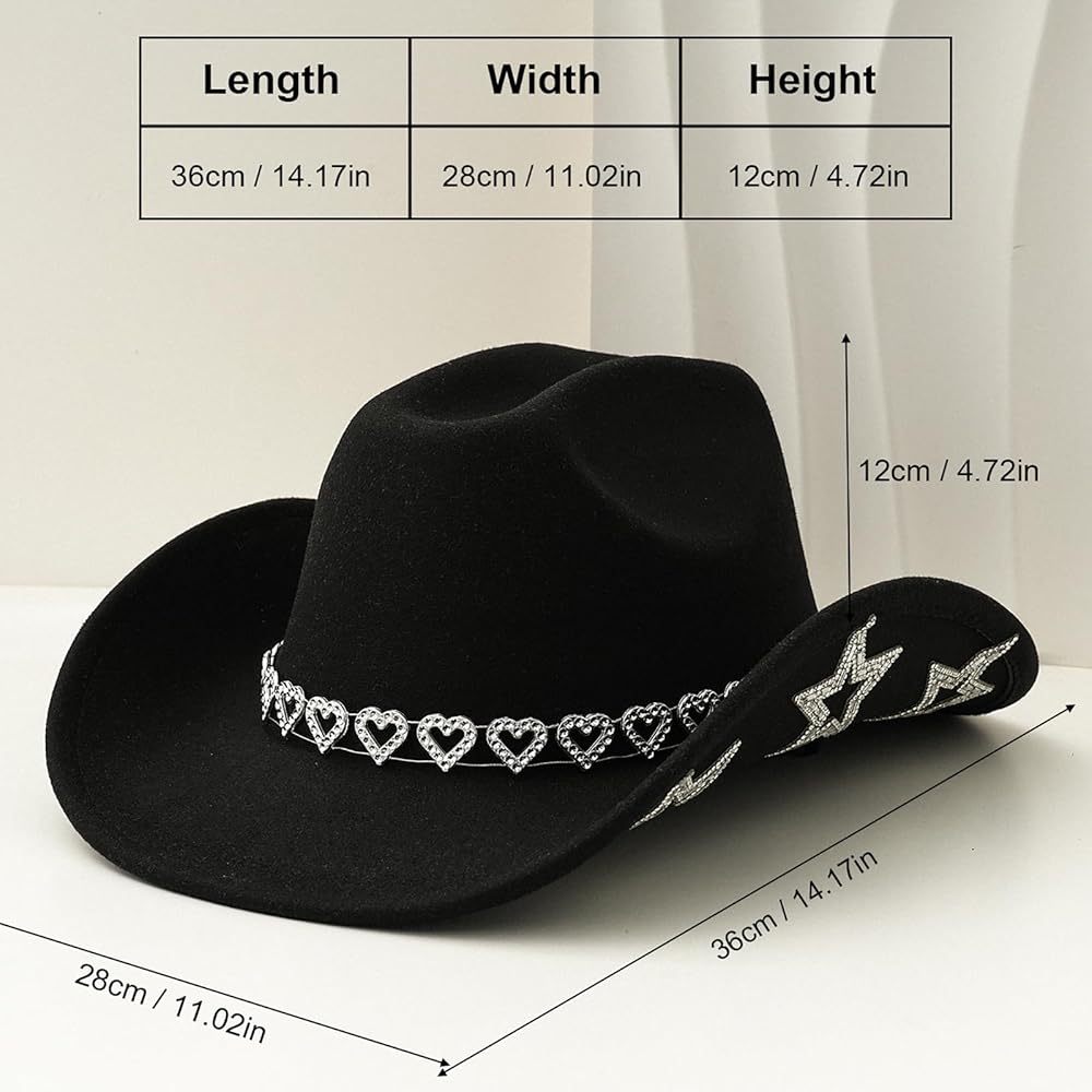 • Dazzling Cowgirl Charm: Features a sparkling heart-shaped rhinestone band and subtle star accents under the brim for a bold Western flair. Combines retro elegance with modern trendiness.
