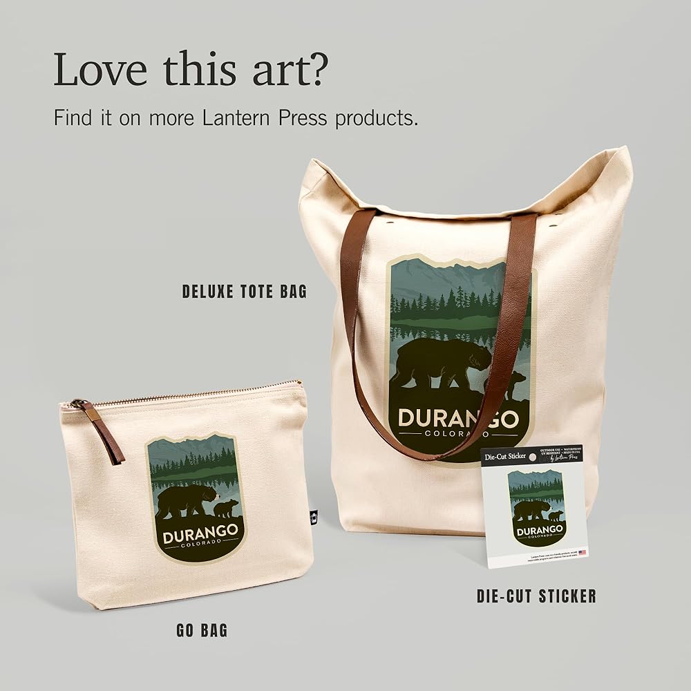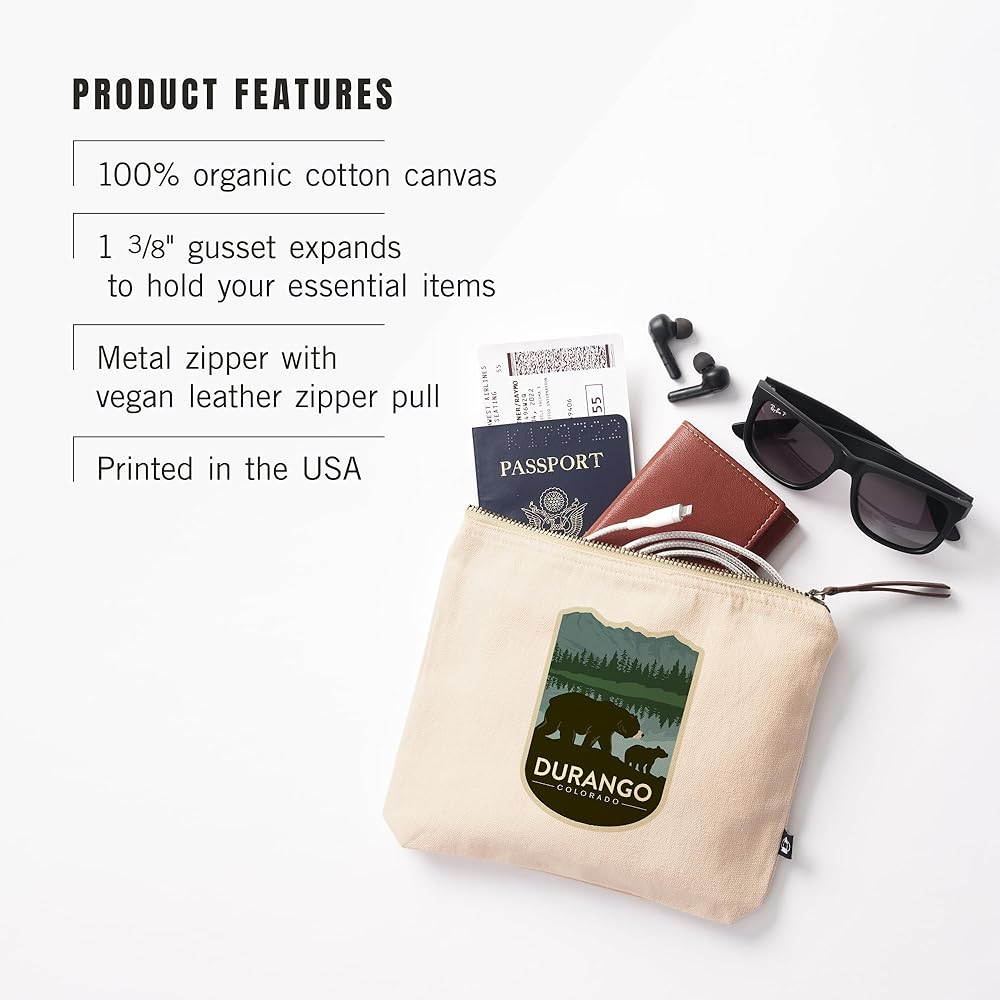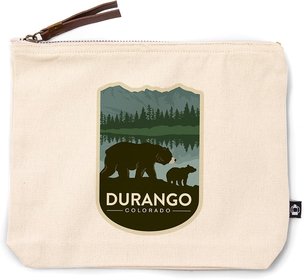 This original, high-quality cotton Zipper Pouch from Lantern Press boasts sharp detail and vivid imagery of Durango, Colorado, Grizzly Bear and Cub, , 100% Cotton Zipper Pouch, Travel Accessory, Go Bag.