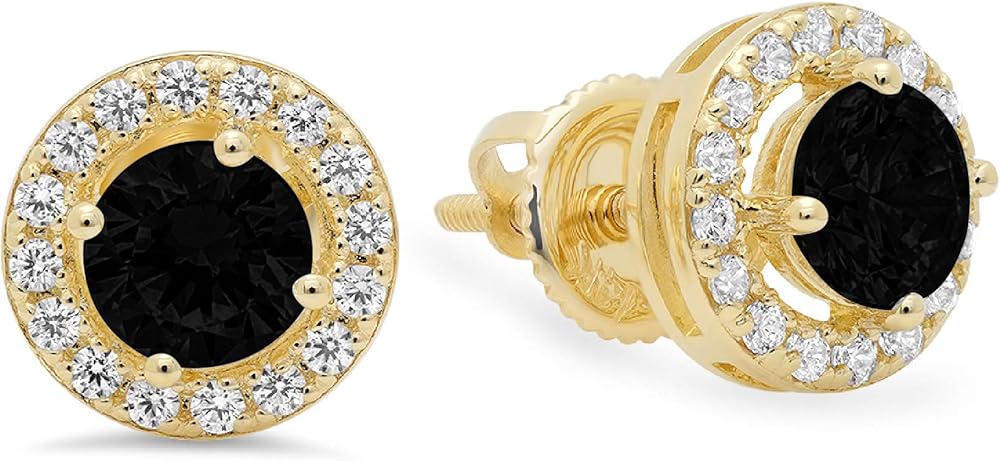 1.60 قيراط من أحجار سوليتير هالة دائرية رائعة لا تشوبها شائبة أحجار كريمة عقيق أسود طبيعي VVS1 زوج مثالي من أقراط سوليتير ذات مسمار خلفي مصمم من الذهب الأصفر عيار 14 قيراط