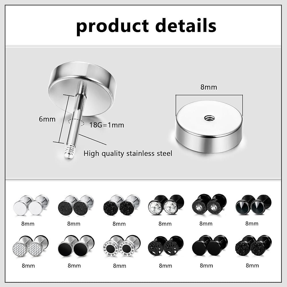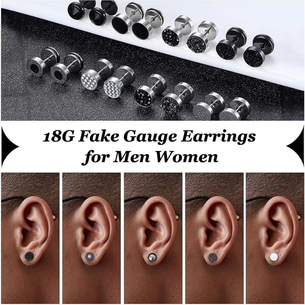 FUNRUN JEWELRY 12 زوجًا 18G أقراط قياس وهمية للرجال والنساء من الفولاذ المقاوم للصدأ أقراط قياس صناعية أقراط أذن وهمية قياسات مجوهرات النفق