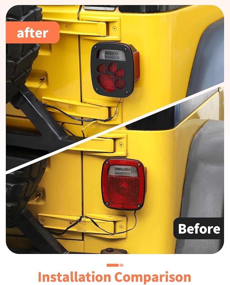 Unique Claw Mark Design: The claw mark pattern not only adds a distinct and aggressive look to your for Jeep, but also provides enhanced protection. It can effectively shield your tail lights from minor collisions, scratches, and debris on the road, making your vehicle stand out.