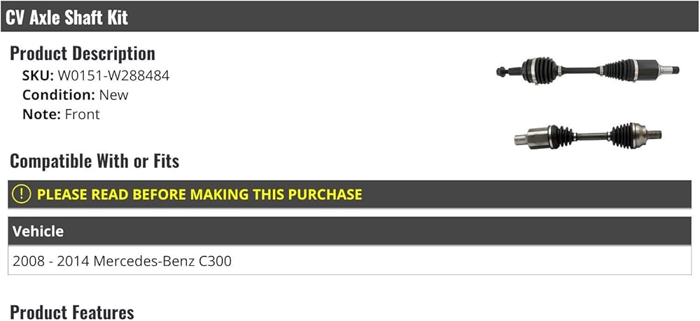 CV Axle Shaft Kit - Compatible with 2008 - 2014 Mercedes-Benz C300
