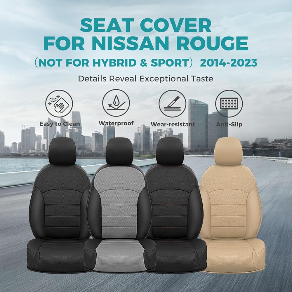 1: 1 Fit Custom-غطاء مقعد السيارات FeinePro مصنوع خصيصًا لنماذج نيسان روج 2014-2020 (ليس للرياضة أو الهجينة). تصميم أنيق وخياطة دقيق يحافظ على جاذبية الداخلية المتأصلة مع عكس أسلوبك الشخصي.