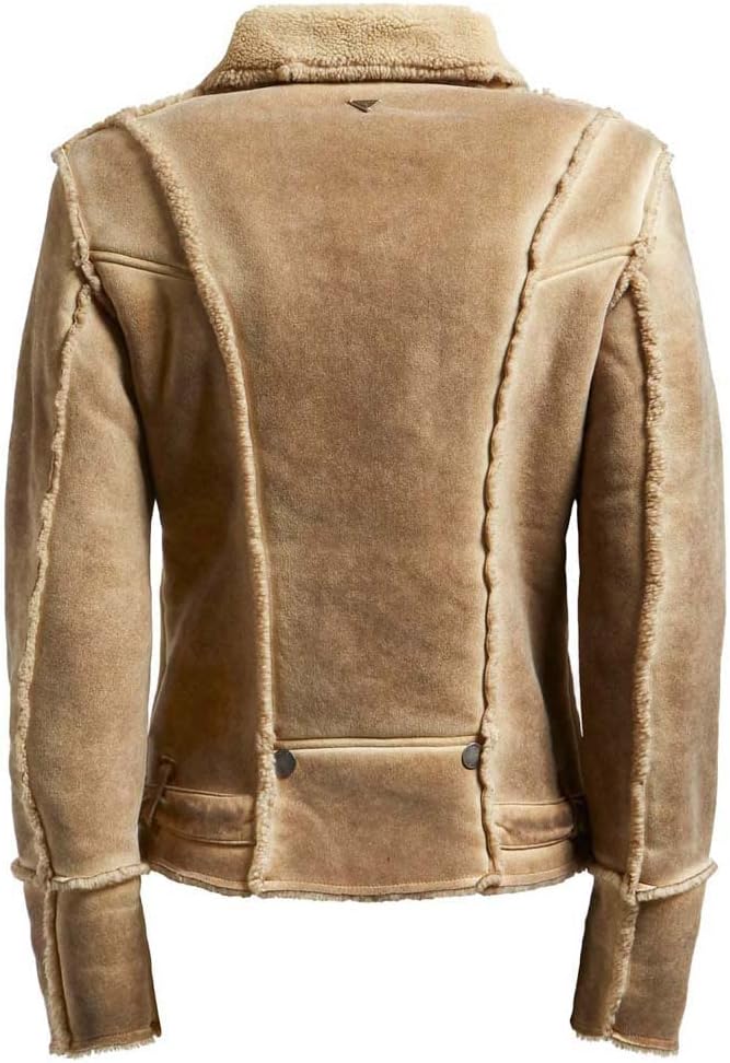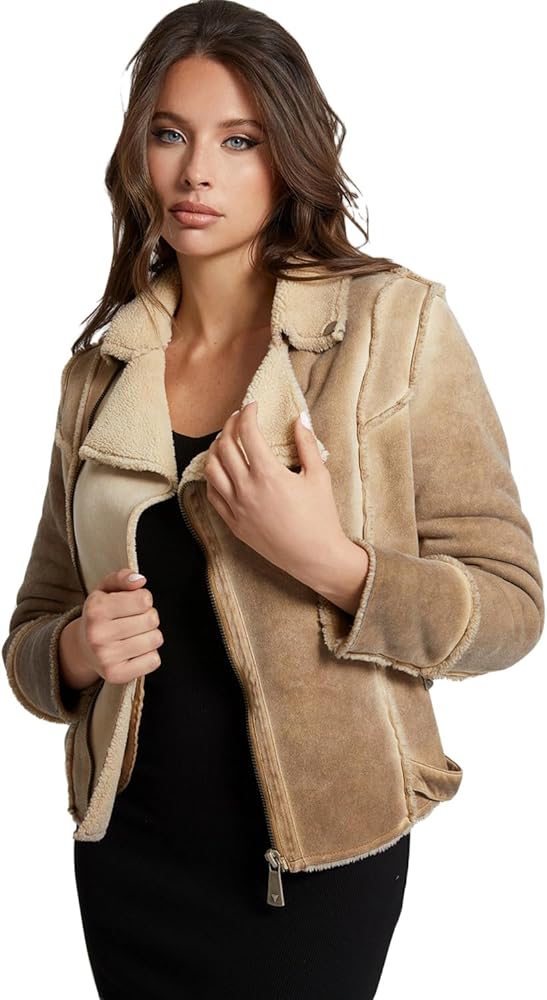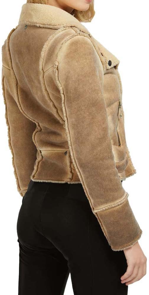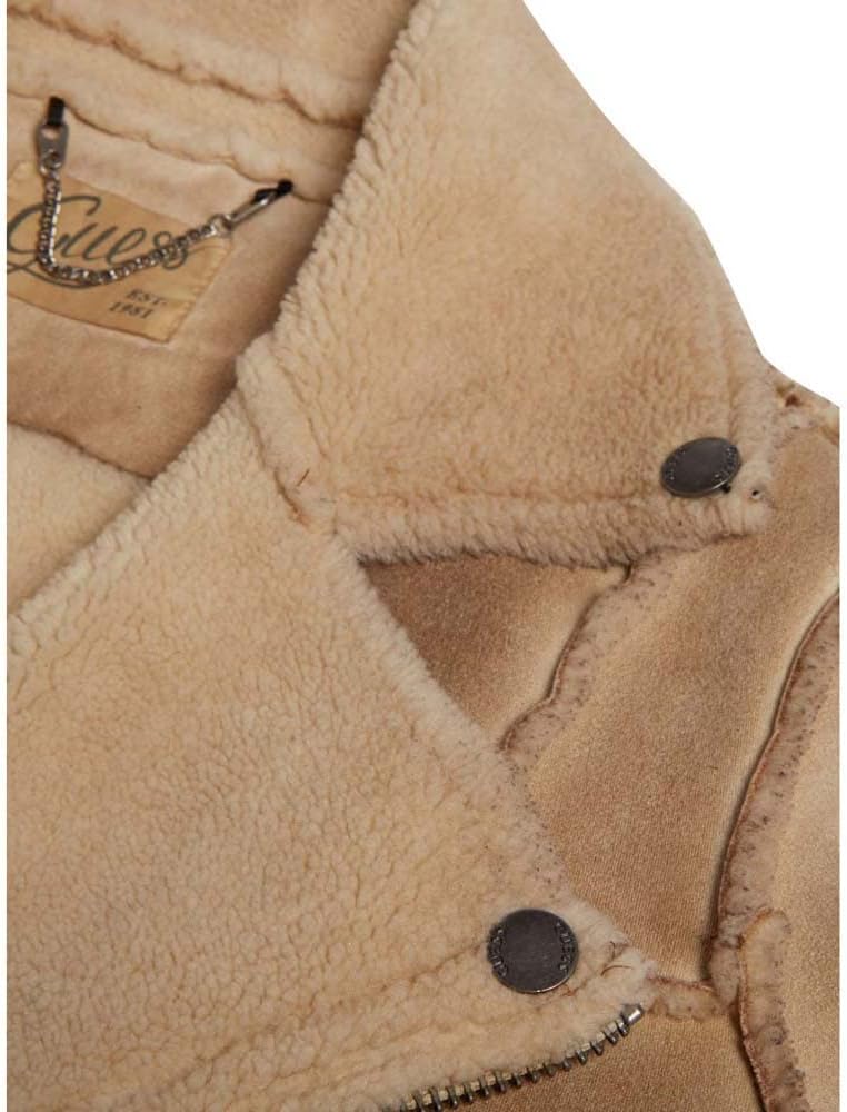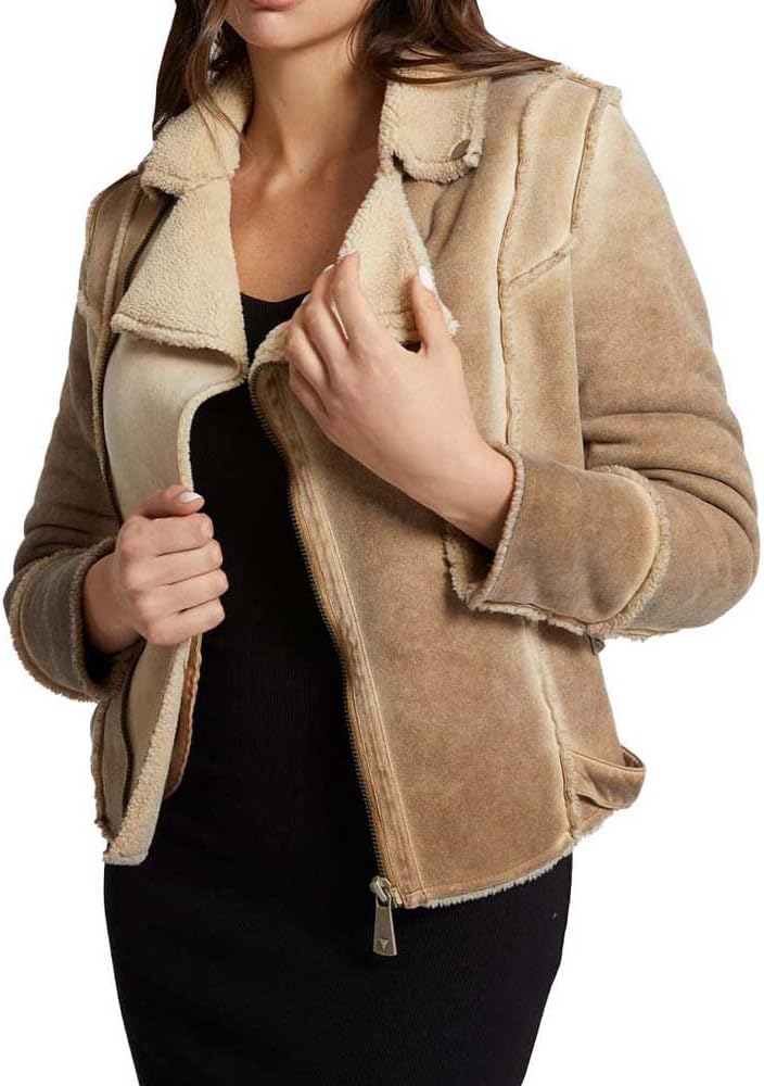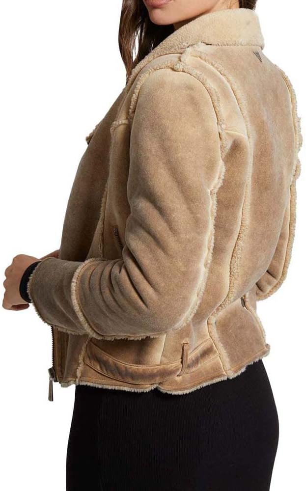 ستشعر بالدفء في الأيام الباردة مع هذا الجاكيت المصنوع من الجلد السويدي الصناعي المصمم بتفاصيل شيربا في كل أرجائه، وياقة مدببة وسحاب أمامي للإغلاق.