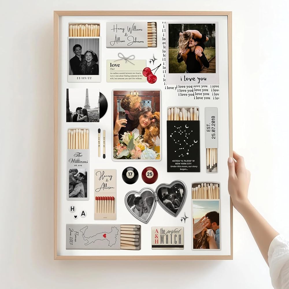 LOVELYPOD قالب ملصق كتاب الثقاب قابل للتحرير مخصص للزوجين، طباعة فنية لعلبة الثقاب من القماش من أجله، هدية عيد ميلاد الذكرى السنوية لعيد الحب لصديق الزوج، فن حائط هدية شخصي للزوجين
