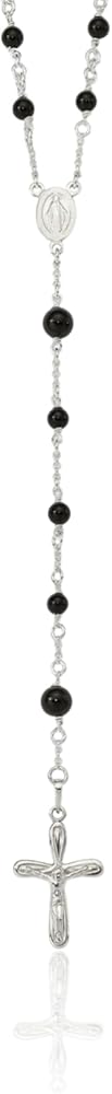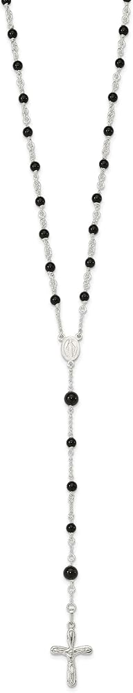 925 Sterling Silver Black Onyx Rosary Bead Bead Necklace