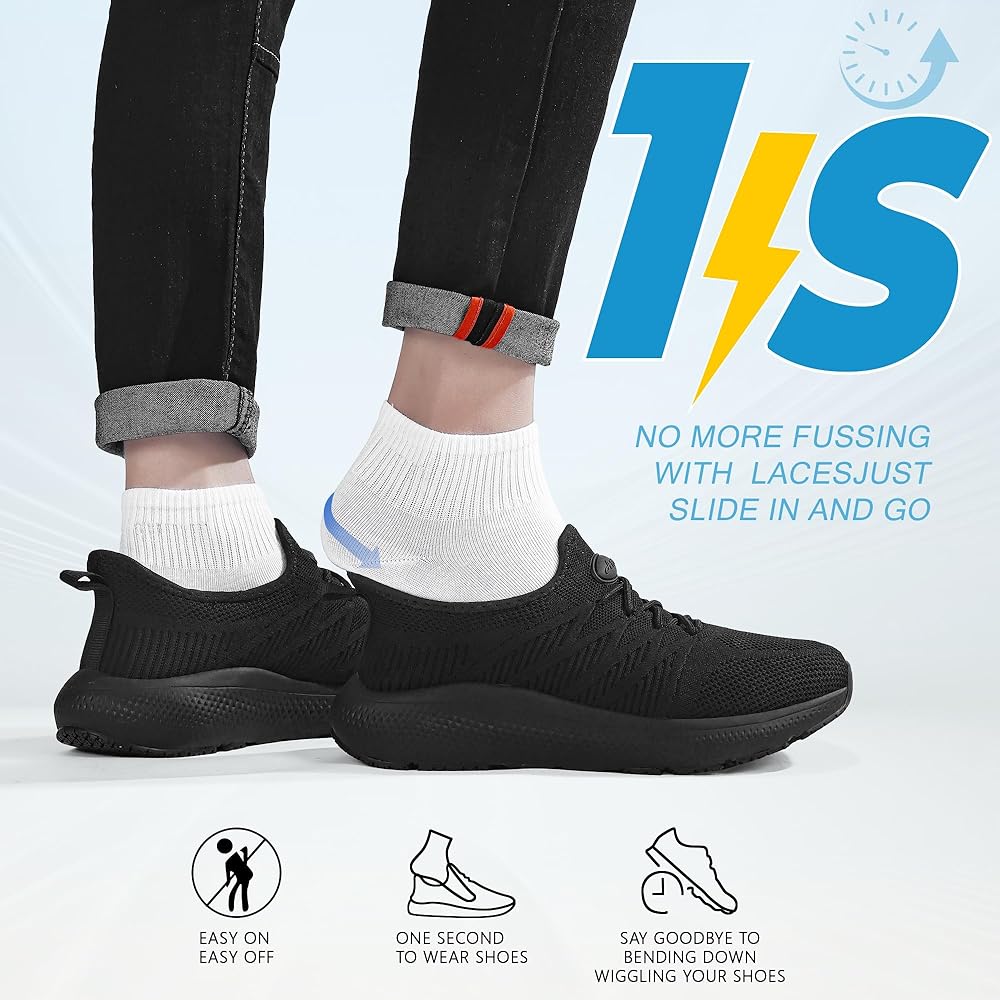 أحذية سهلة على الانزلاق للنساء: يمكنك وضعها وخلعها بسرعة كبيرة. يتيح لك الكعب المعزز لأحذية المشي السوداء هذه الأحذية غير المنزلق بالانزلاق على الحذاء في الثانية دون الحاجة إلى الانحناء.