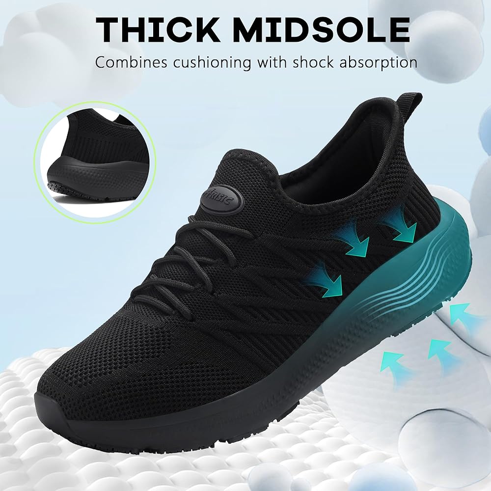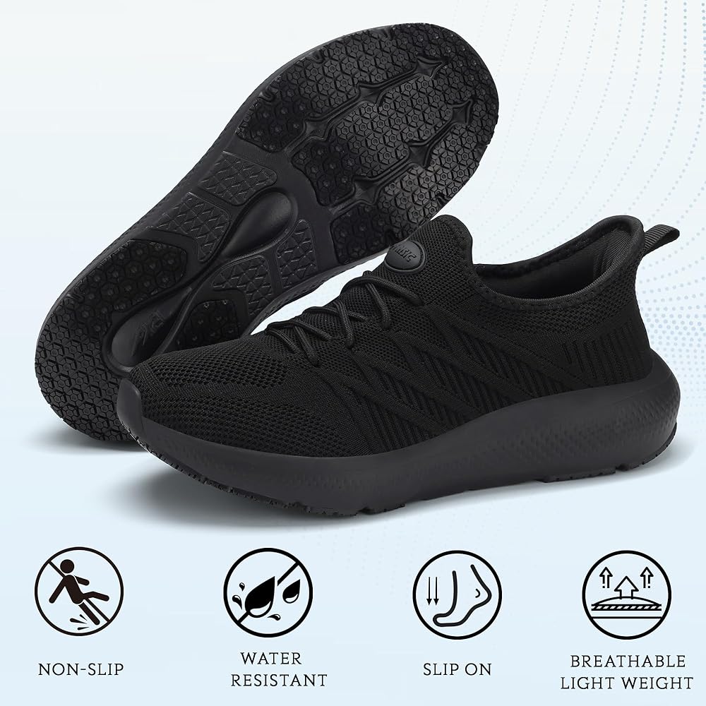 أحذية غير قابلة للانزلاق النساء: أحذية عملنا المقاومة للانزلاق للنساء والرجال لها باطن مطاطي سميك وداحة مقاومة للانزلاق لسيارة قبضة محسنة. تساعد هذه الأحذية على أحذية المشي المقاومة للماء للأحذية الرياضية على التأمين المؤكد في بيئات زلقة مثل المطاعم ، مما يجعلها أحذية مطبخ رائعة للنساء.