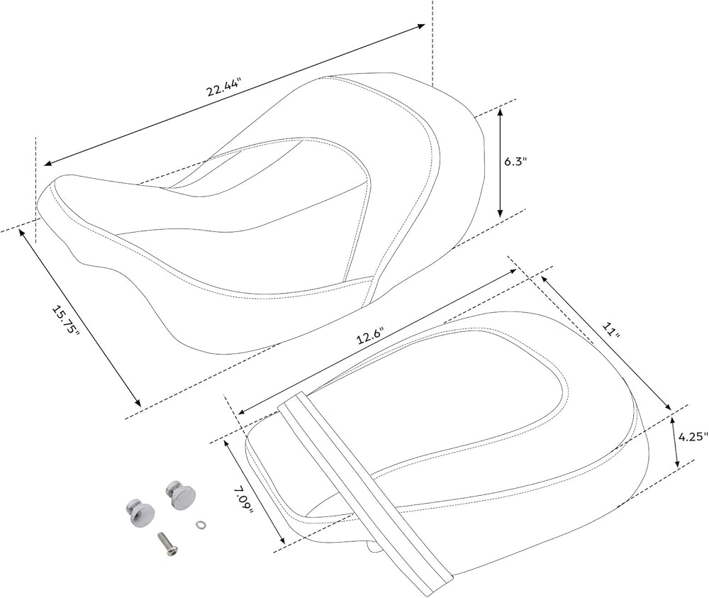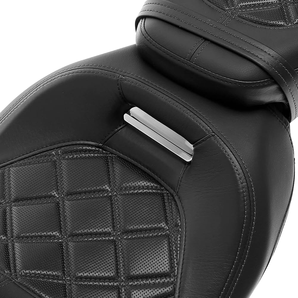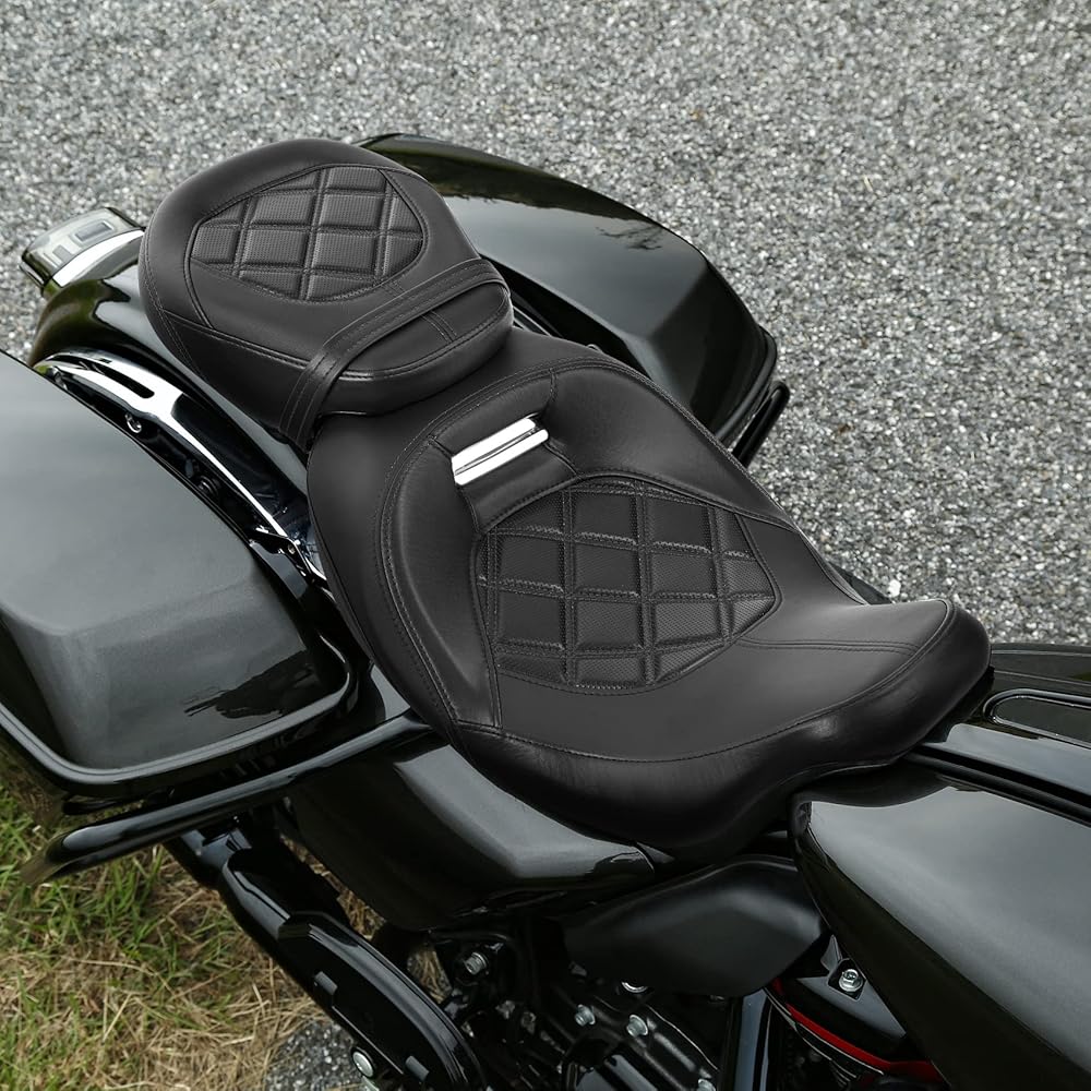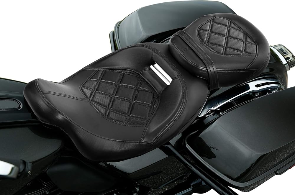 التركيب-تم تصميم مقعد الدراجات النارية هذا لتلائم "2009 -'23 Harley Touring Models King ، Road Glide ، Gread Glide ، Electra Glide ، إلخ (باستثناء 2023-L-Lecly Electra Highway King ، CVO Street Glide ، CVO Road Glide ، Road Glide 3 Model ، 2024-Later Street Glide Glide و CV Road Glide. لا يناسب نماذج Trike. عرض المقعد 15.0 بوصة