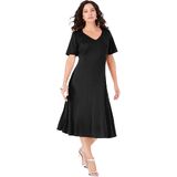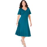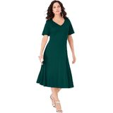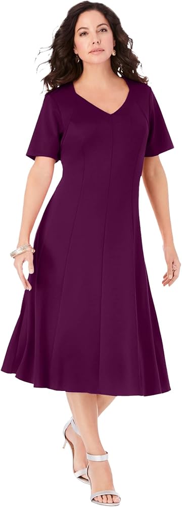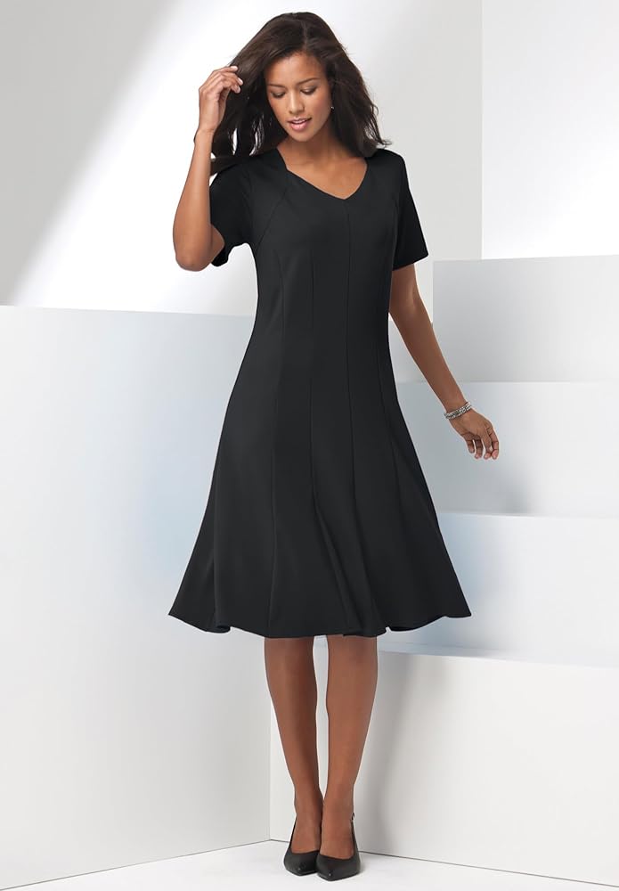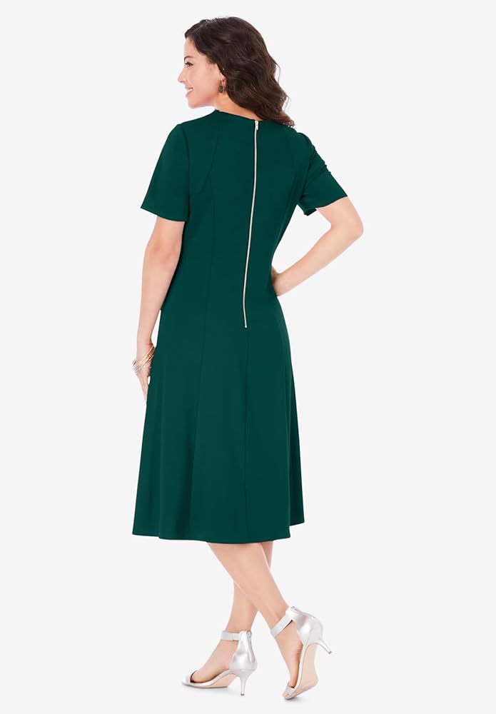 A dress with attitude for feeling (and looking) your best. Faux shrug style with short sleeves, fit-and-flare silhouette, back exposed zipper. Ultimate Ponte is perfect for any occasion. Polished and sleek, but with a comfortable feel, this luxurious, knit fabric looks super professional while being easy to wear and style. Available in an array of flattering silhouettes, these are your outfit-building essentials. 42" lengthRayon/poly/spandexMachine washImported