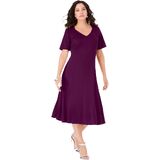 • A dress with attitude for feeling (and looking) your best. Faux shrug style with short sleeves, fit-and-flare silhouette, back exposed zipper.