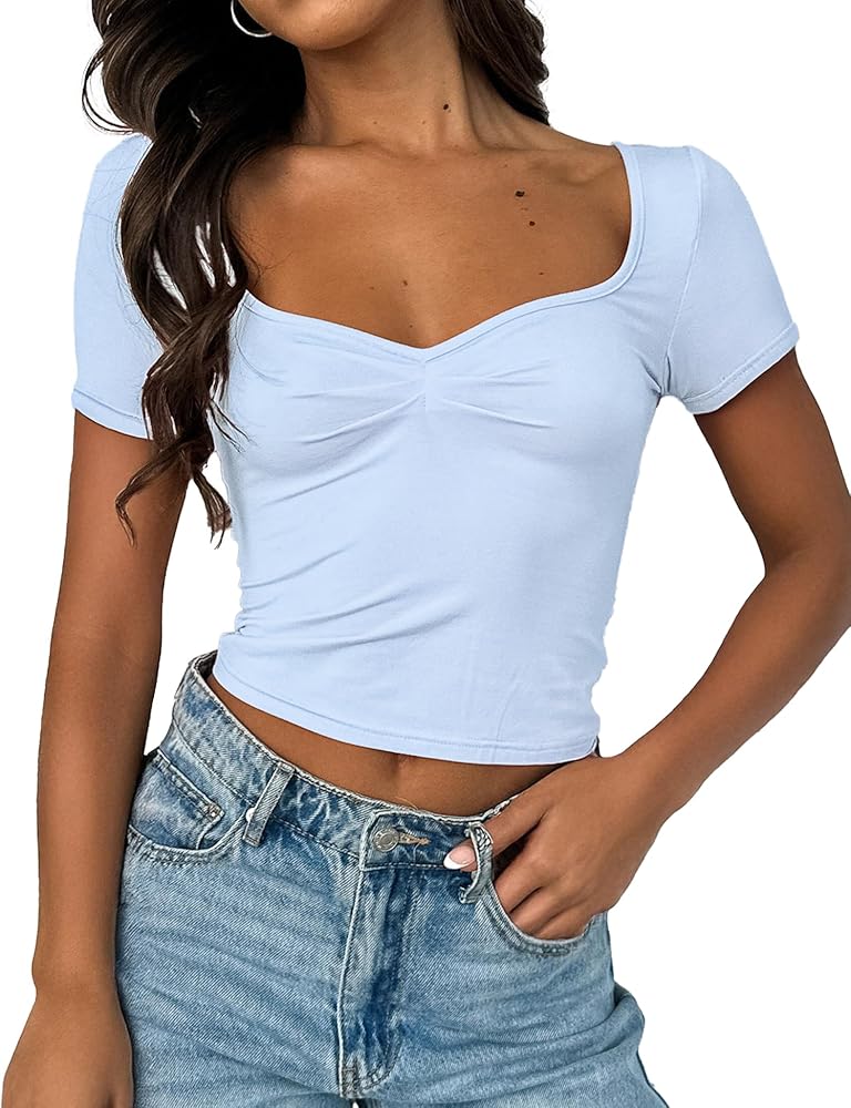 التصميم: يضم نمط الأكمام القصيرة المستوحاة من Y2K ، خط العنق المنخفض والتفاصيل الأمامية. يسلط قطع المحاصيل النحيف ملائمة الضوء على محيط الخصر ، وهو لطيف مثالي للخروج للفتيات في سن المراهقة.
