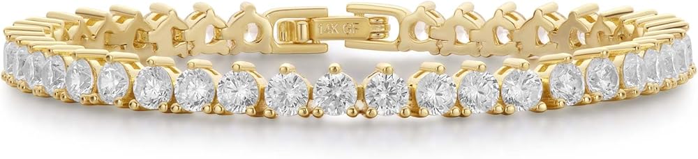 الجودة الممتازة: يتميز سوار التنس المملوء بالذهب 14K للنساء ، ويتميز بأحجار زركونيا مكعب 4 مم ، مما يضيف لمسة من الأناقة إلى أي ملابس