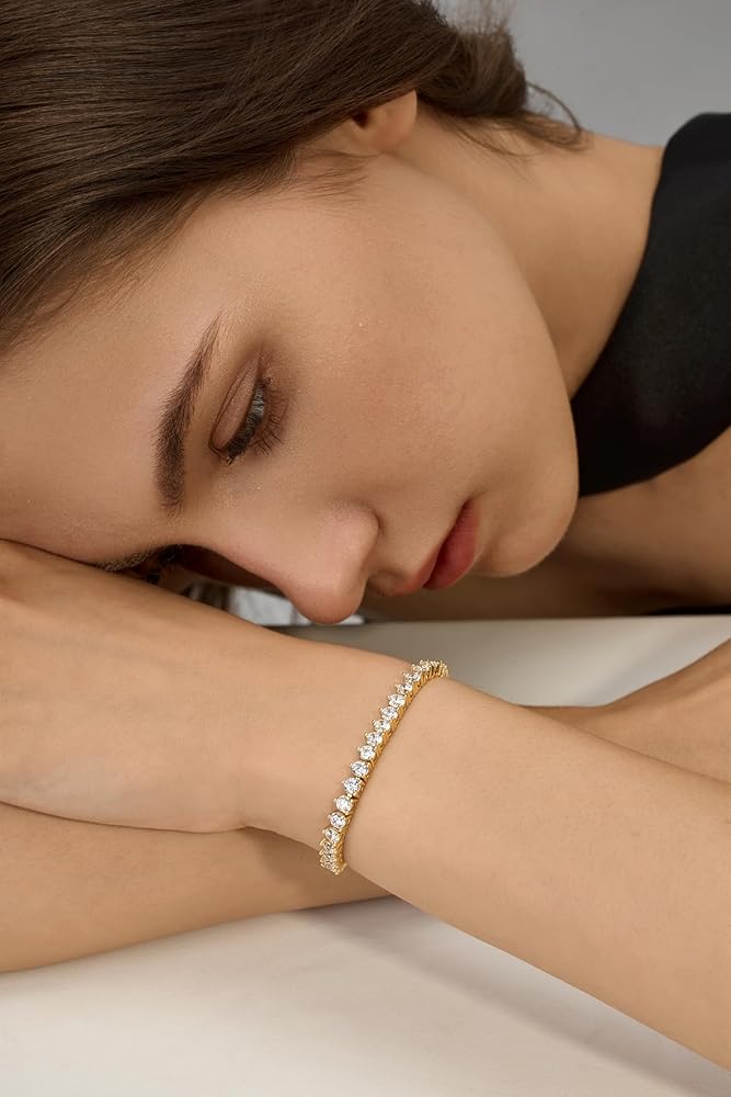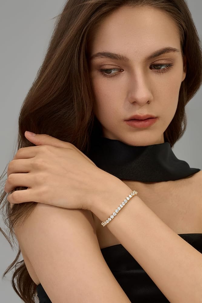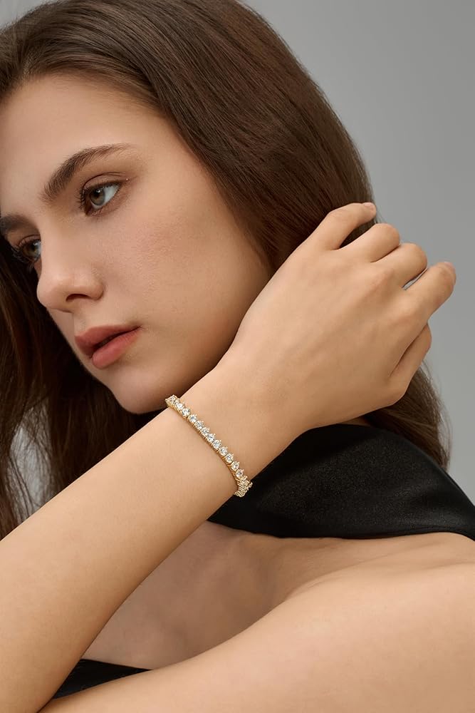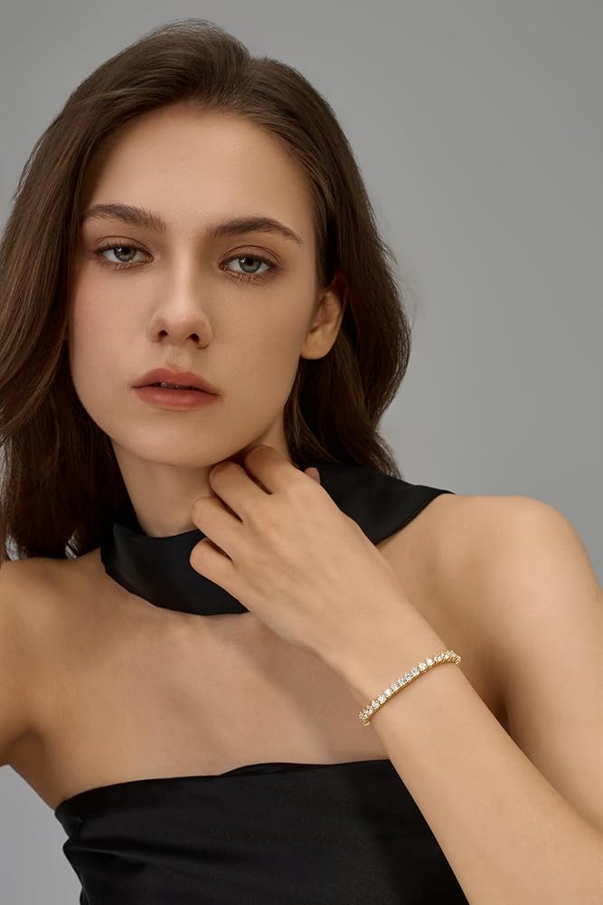 التصميم الخالد: سوار التنس الذهبي الكلاسيكي الذي يكمل كل نمط ، سواء كان غير رسمي أو رسمي ، مما يجعله قطعة مجوهرات متعددة الاستخدامات للنساء